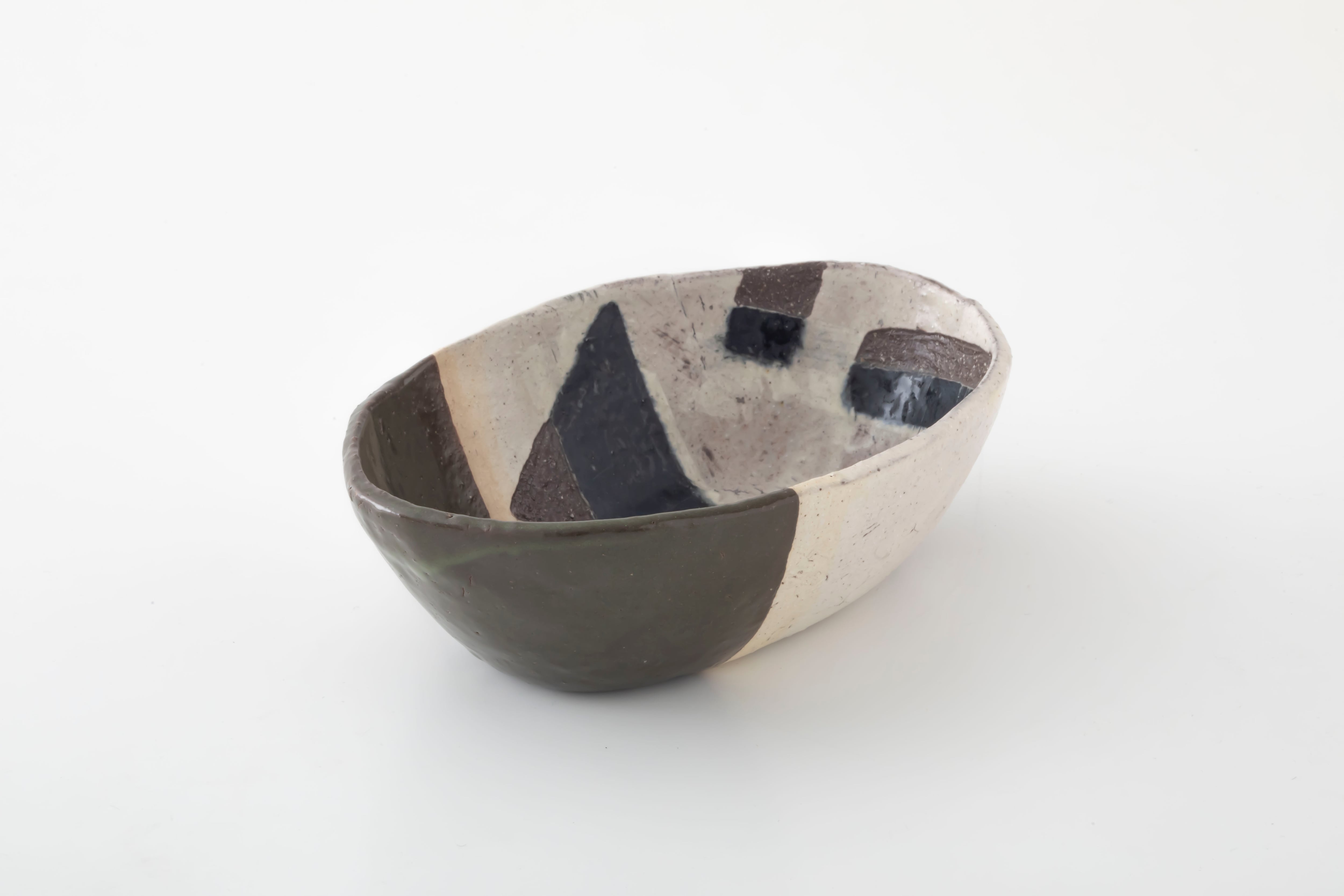 大胆に模様が描かれた長方形鉢は深緑と白のコントラストが印象的。しっかりと深さがあるので、煮物や和物など汁気のある料理にもぴったりです。