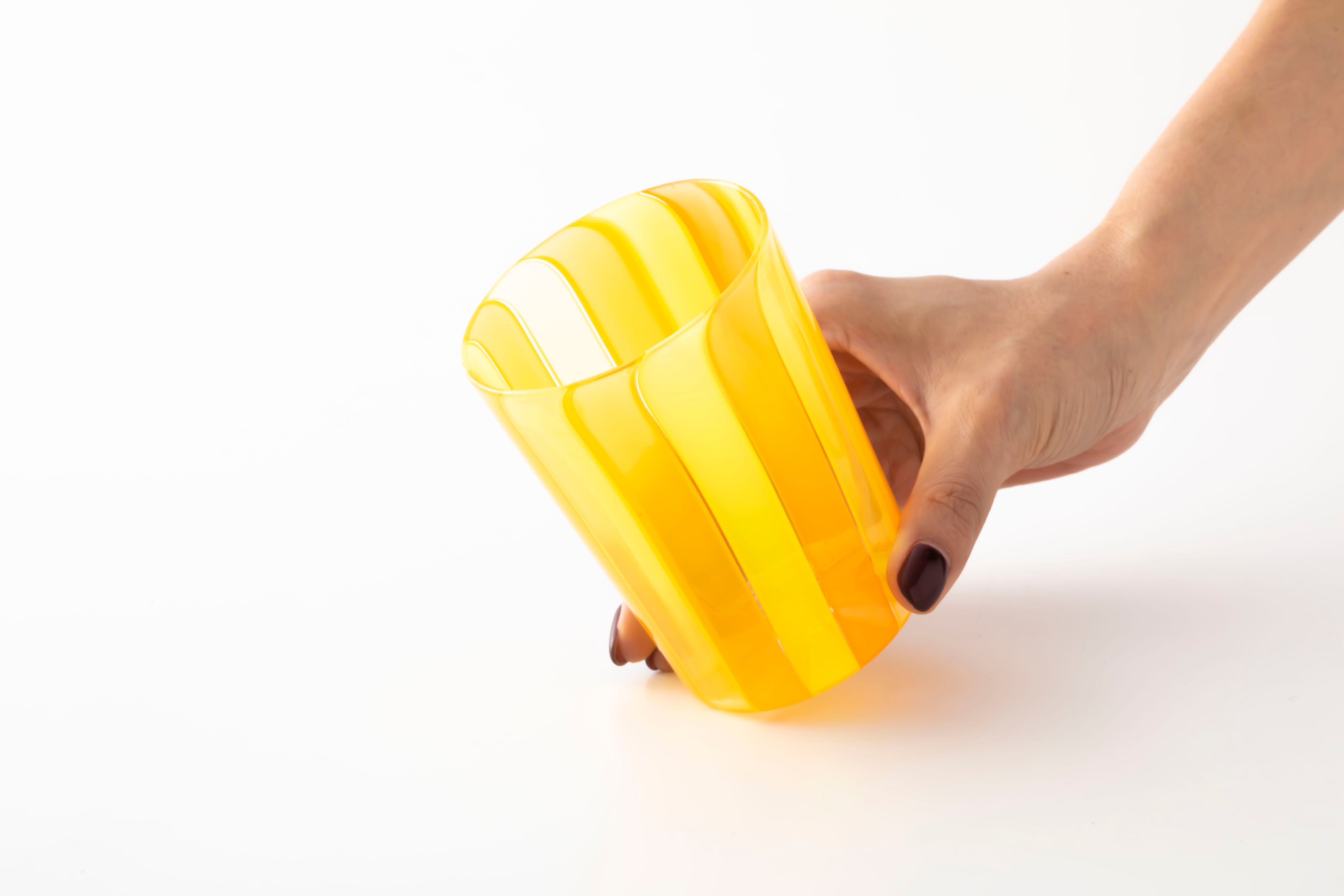 鮮やかなカラーが目を引くカップは、ジュースやアイスコーヒー、ワインなど、注ぐ飲み物によって変化する表情をお楽しみいただけます。グラスとしてだけでなくフラワーベースやオブジェとして飾るなど、暮らしの中でお好みの使い方をぜひ見つけてみてください。