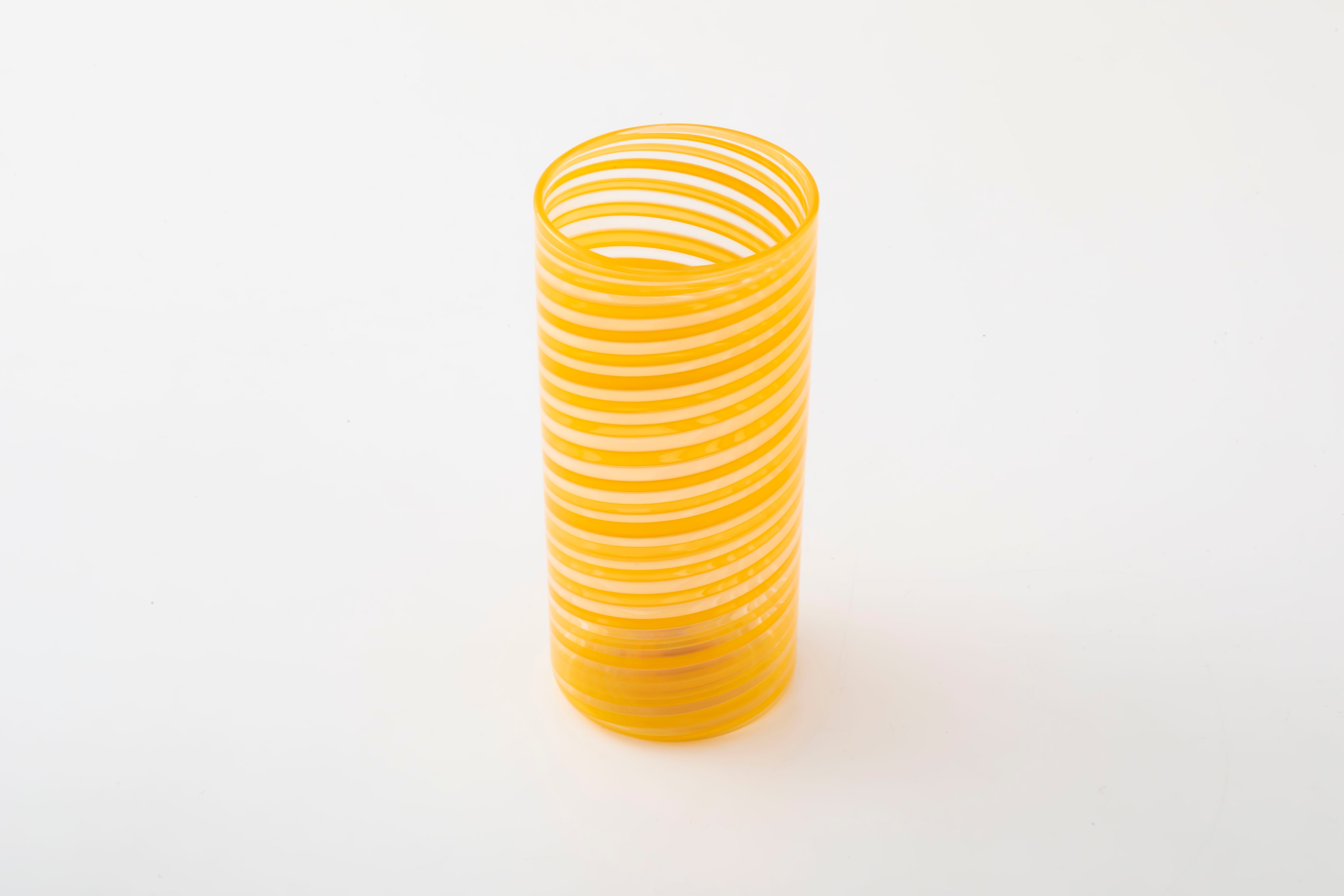 すっきりと縦長にシェイプされたカップに螺旋状に入ったラインは、光を受けることでより一層美しい表情を見せてくれます。フラワーベースやオブジェとして飾るなど、暮らしの中でお好みの使い方をぜひ見つけてみてください。