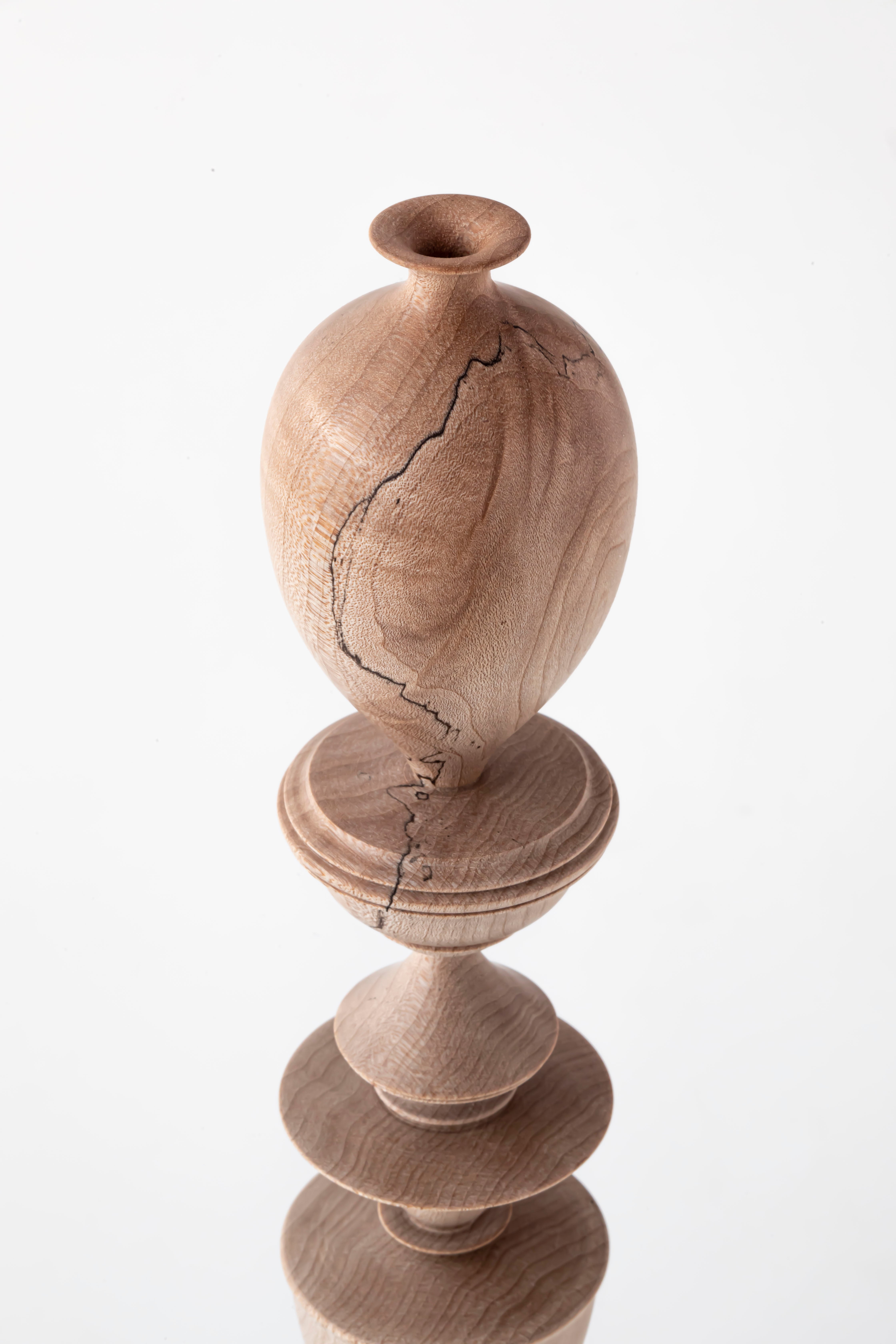 1本の木材から削り出されたドライフラワー専用の装飾台付花器(一輪挿し)は、360度どこから眺めても美しく、オブジェとしてそのまま飾るだけでも存在感を放ちます。