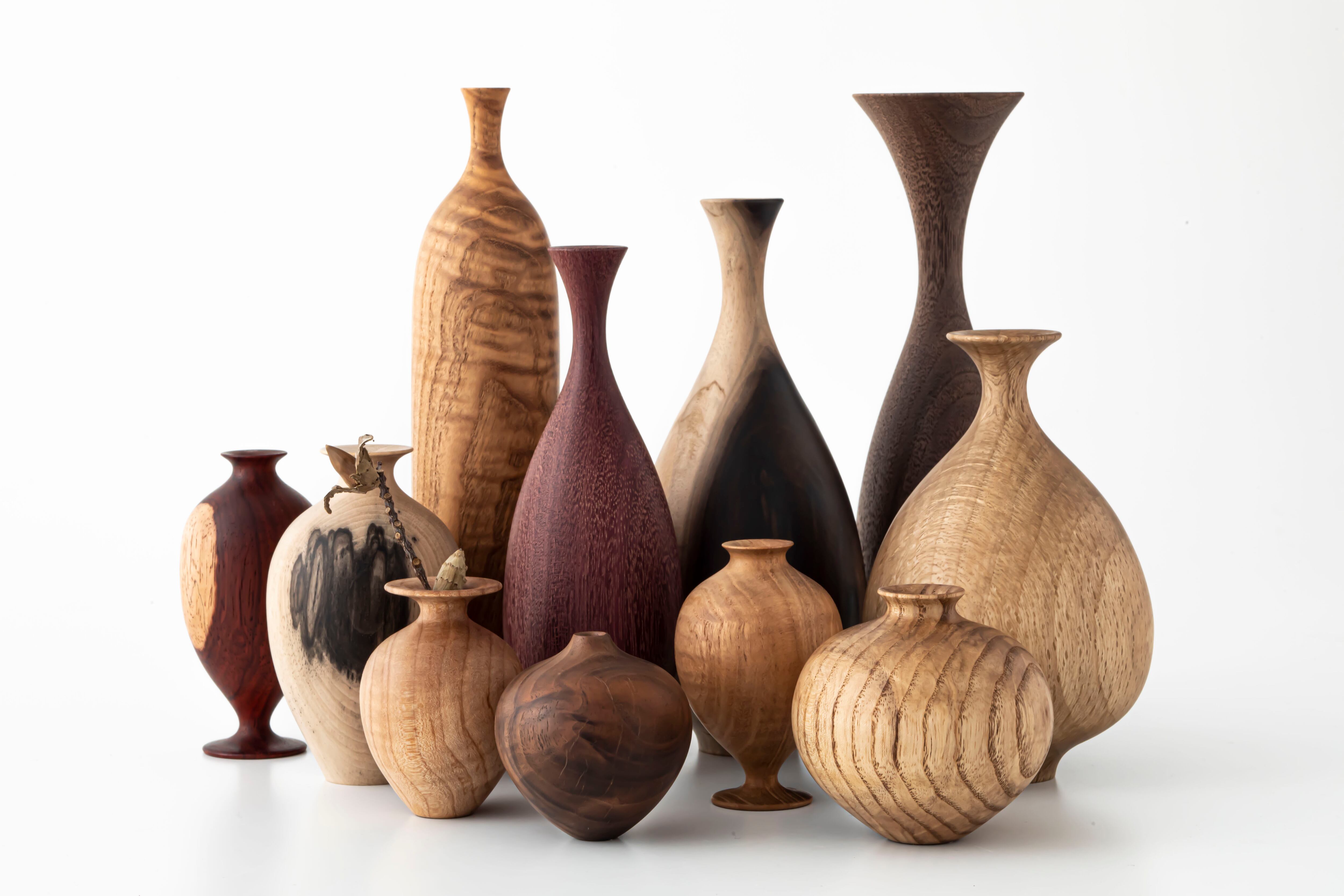 自然が生む色彩のグラデーションと曲線が優美な木目、木そのものの捻れや溝、割れなどを活かした作品が木工作家・市川岳人の魅力です。