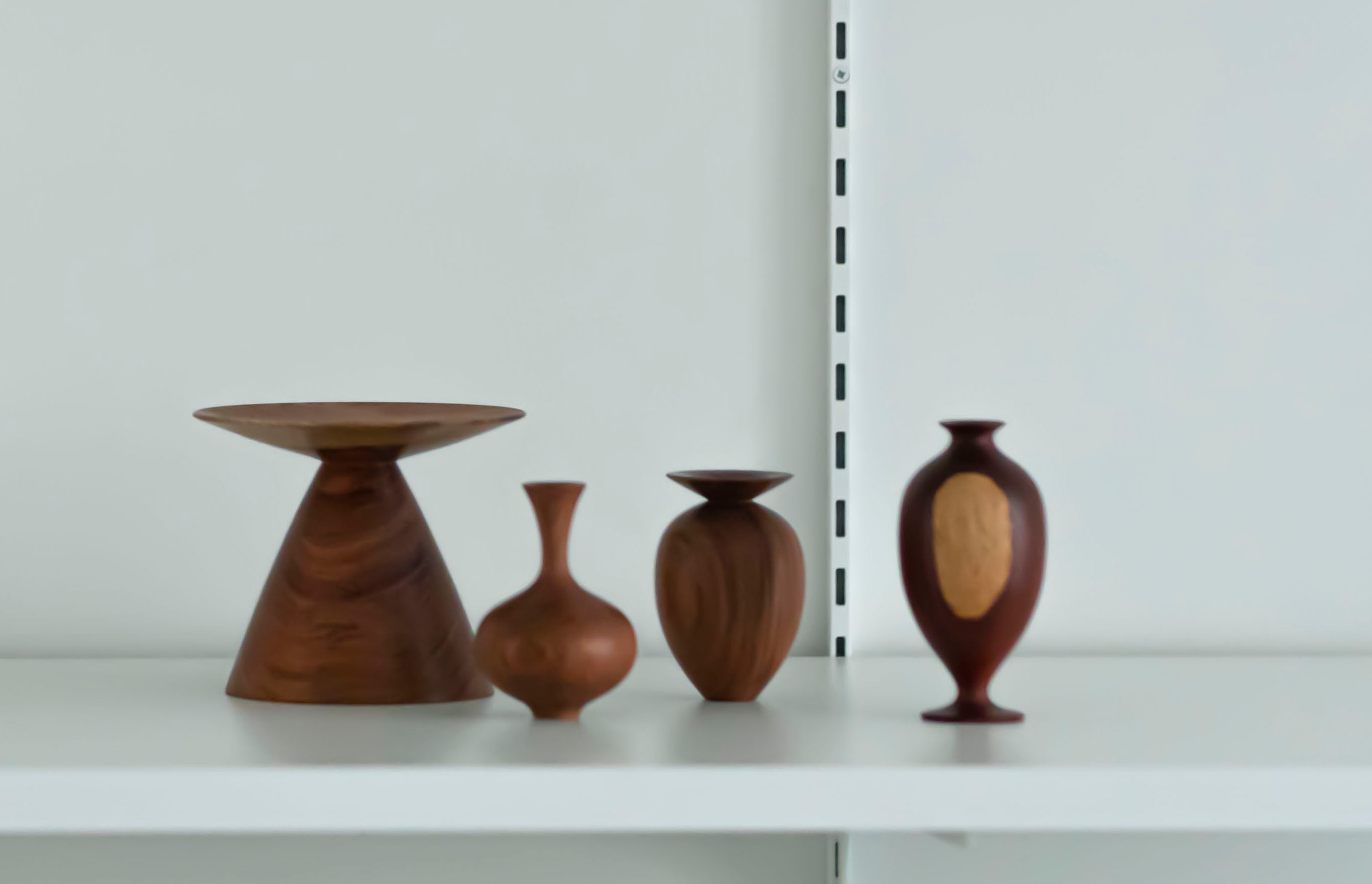 自然が生む色彩のグラデーションと曲線が優美な木目、木そのものの捻れや溝、割れなどを活かした作品が木工作家・市川岳人の魅力です。