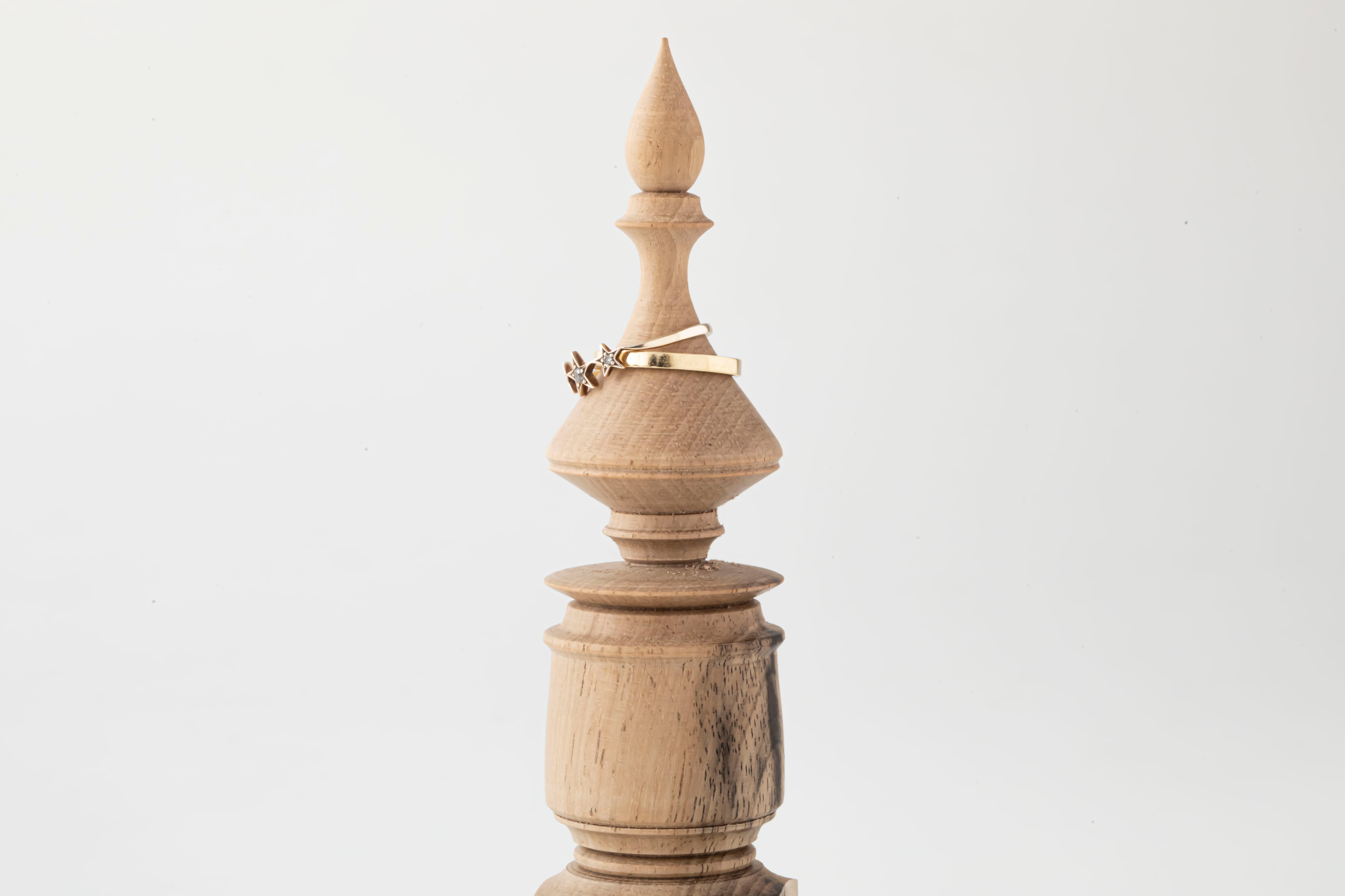 ご自身用にはもちろん、バースデーギフトやマリッジギフトとしてもおすすめなリングスタンドは、指輪をかけていない時もオブジェとして雰囲気たっぷりにインテリアを飾ってくれます。また、お気に入りの指輪を掛けることで、木目の美しさや素材の個性がより一層際立ち、ひとつの作品として完成するような佇まいに。大切なジュエリーと共に愛でていただけたら嬉しいです。