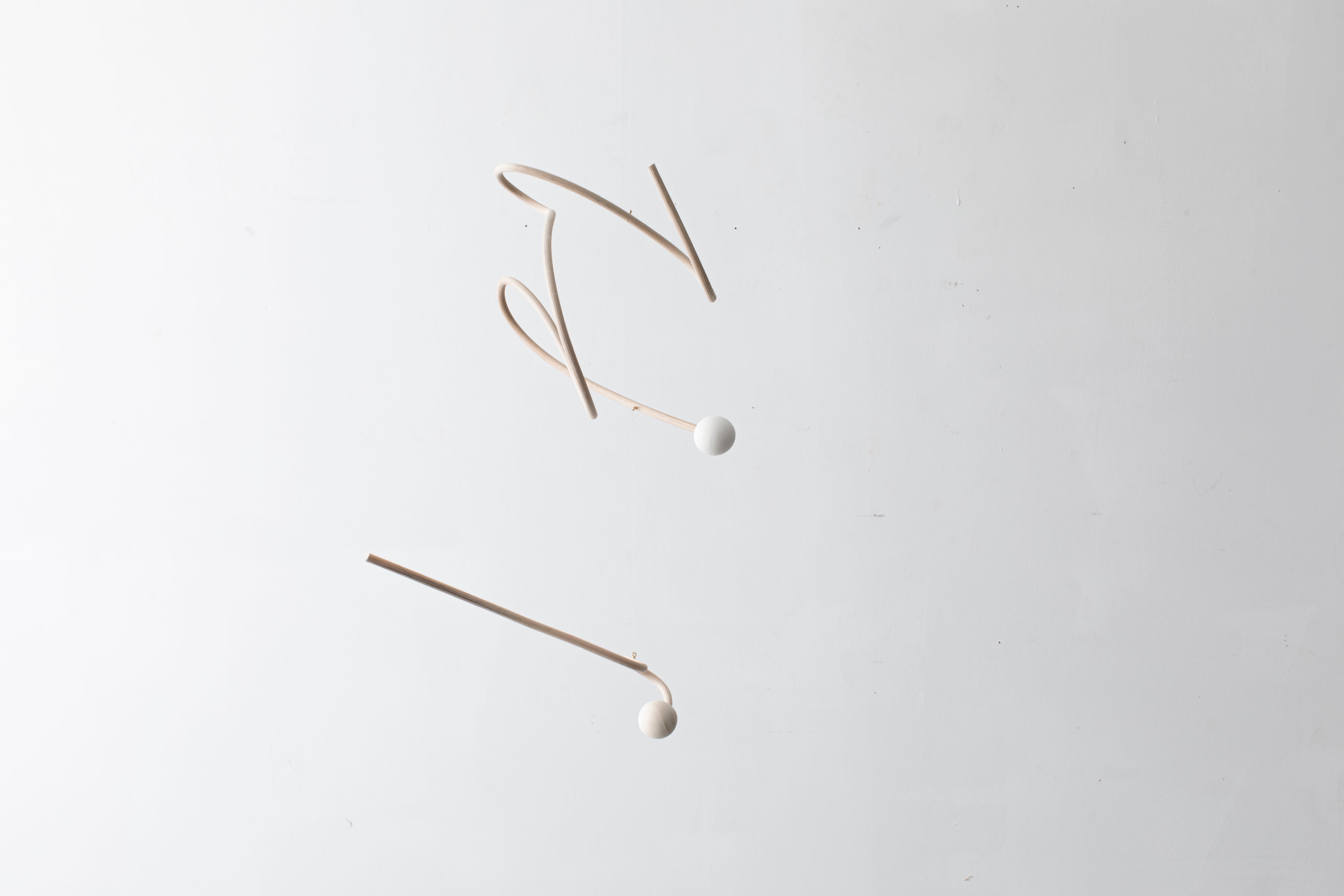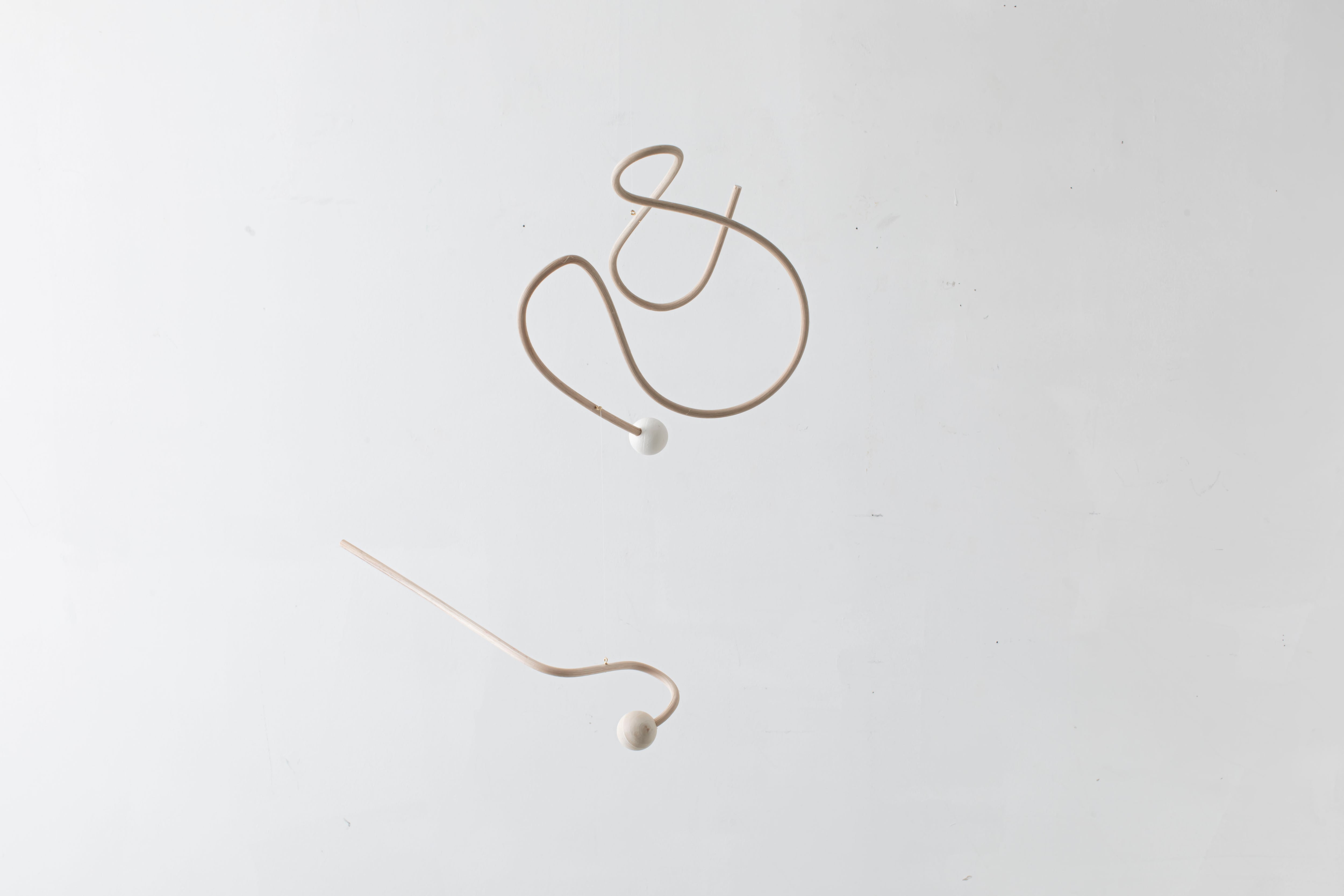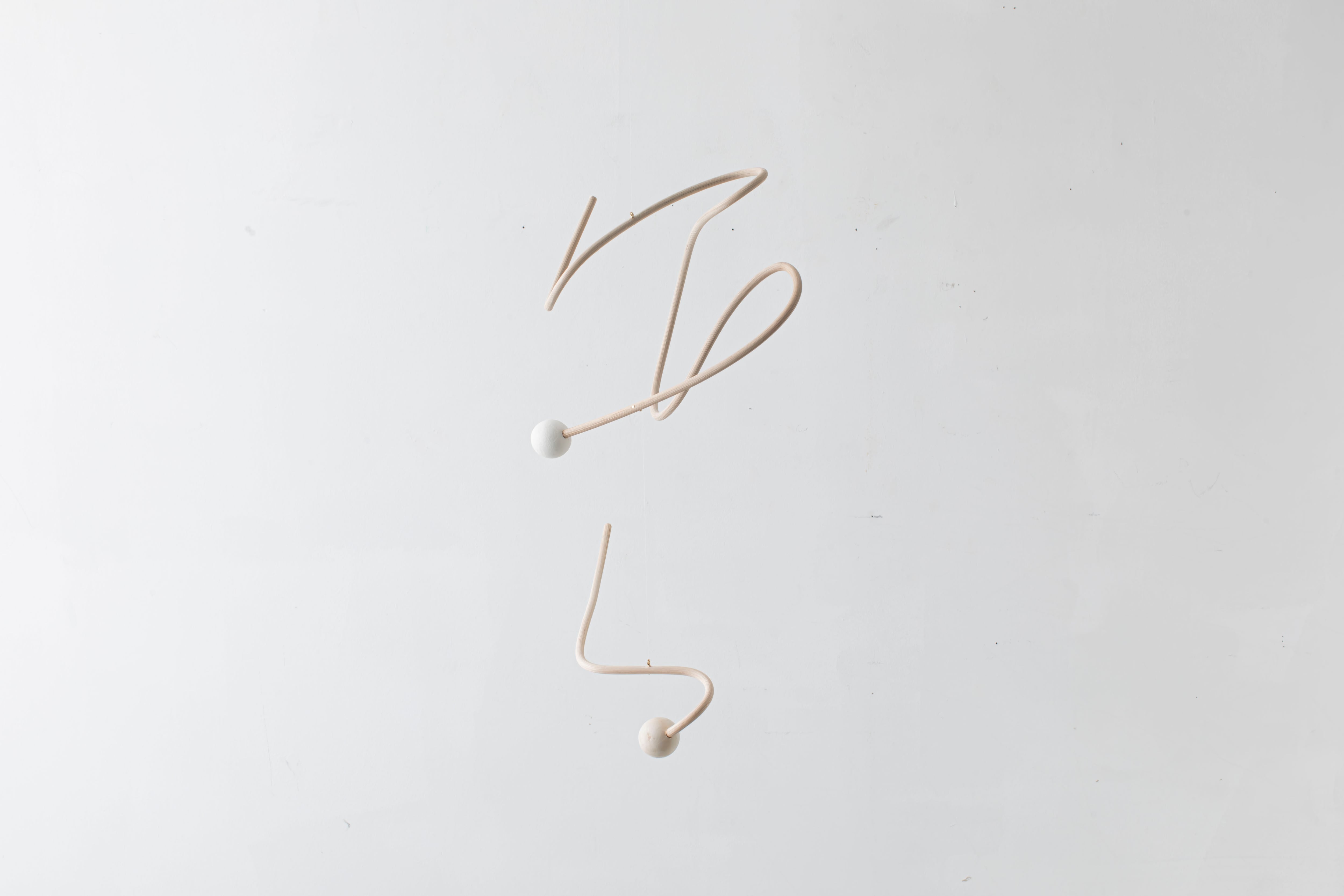 曲線が生み出すアイコニックなフォルムのモビールは、一本の籐を手作業でひとつひとつ型を使用しながら湾曲させて立体的に仕上げています。吊るし紐の長さや、かけ方を変えたりするだけで表情が変えられるので、飾る場所などによってアレンジを効かせながら何通りもの楽しみ方ができます。(※デザインによってはかけ方を変えられないものもございます)
