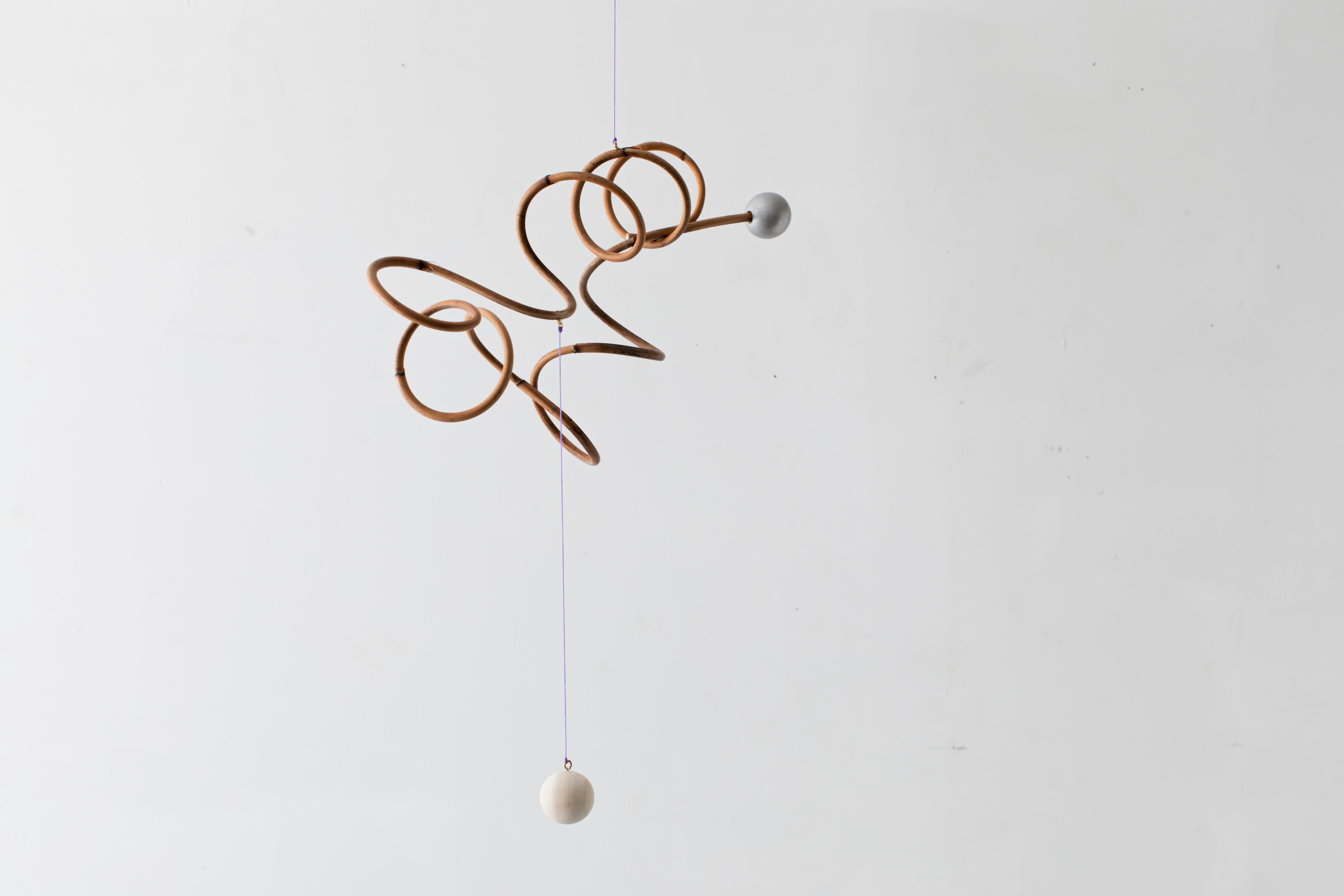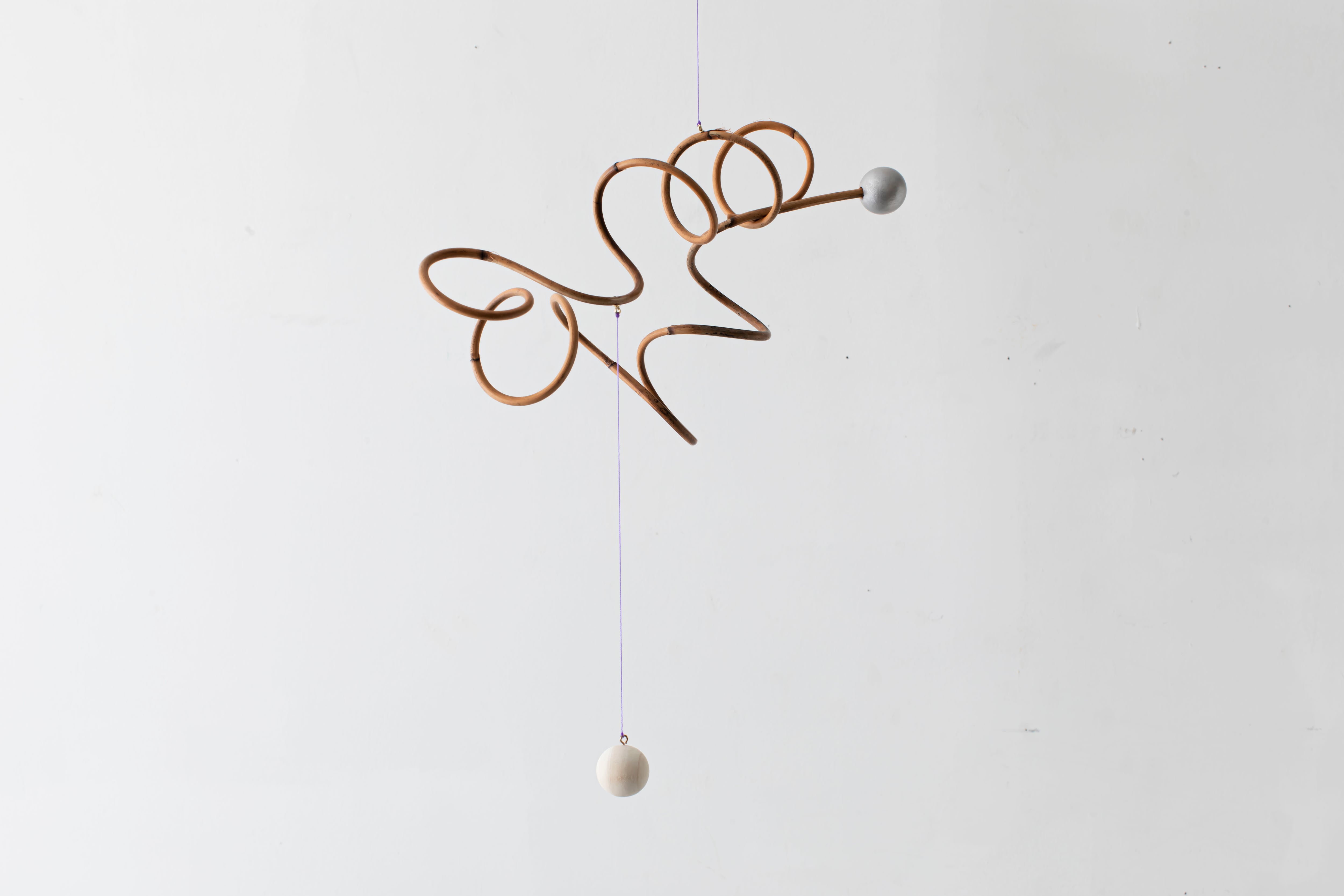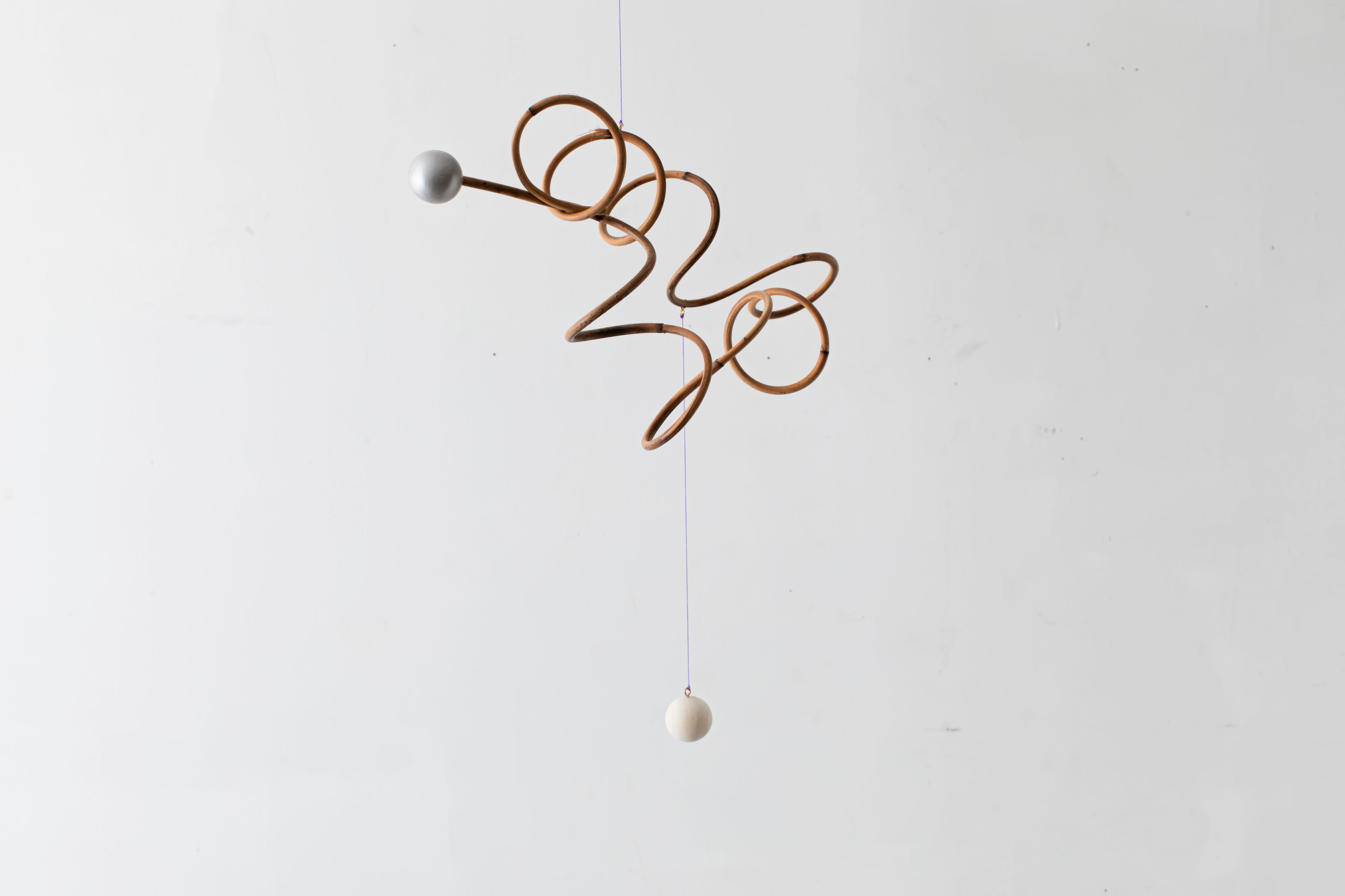 曲線が生み出すアイコニックなフォルムのモビールは、一本の籐を手作業でひとつひとつ型を使用しながら湾曲させて立体的に仕上げています。吊るし紐の長さや、かけ方を変えたりするだけで表情が変えられるので、飾る場所などによってアレンジを効かせながら何通りもの楽しみ方ができます。表情の変化もぜひお楽しみください。