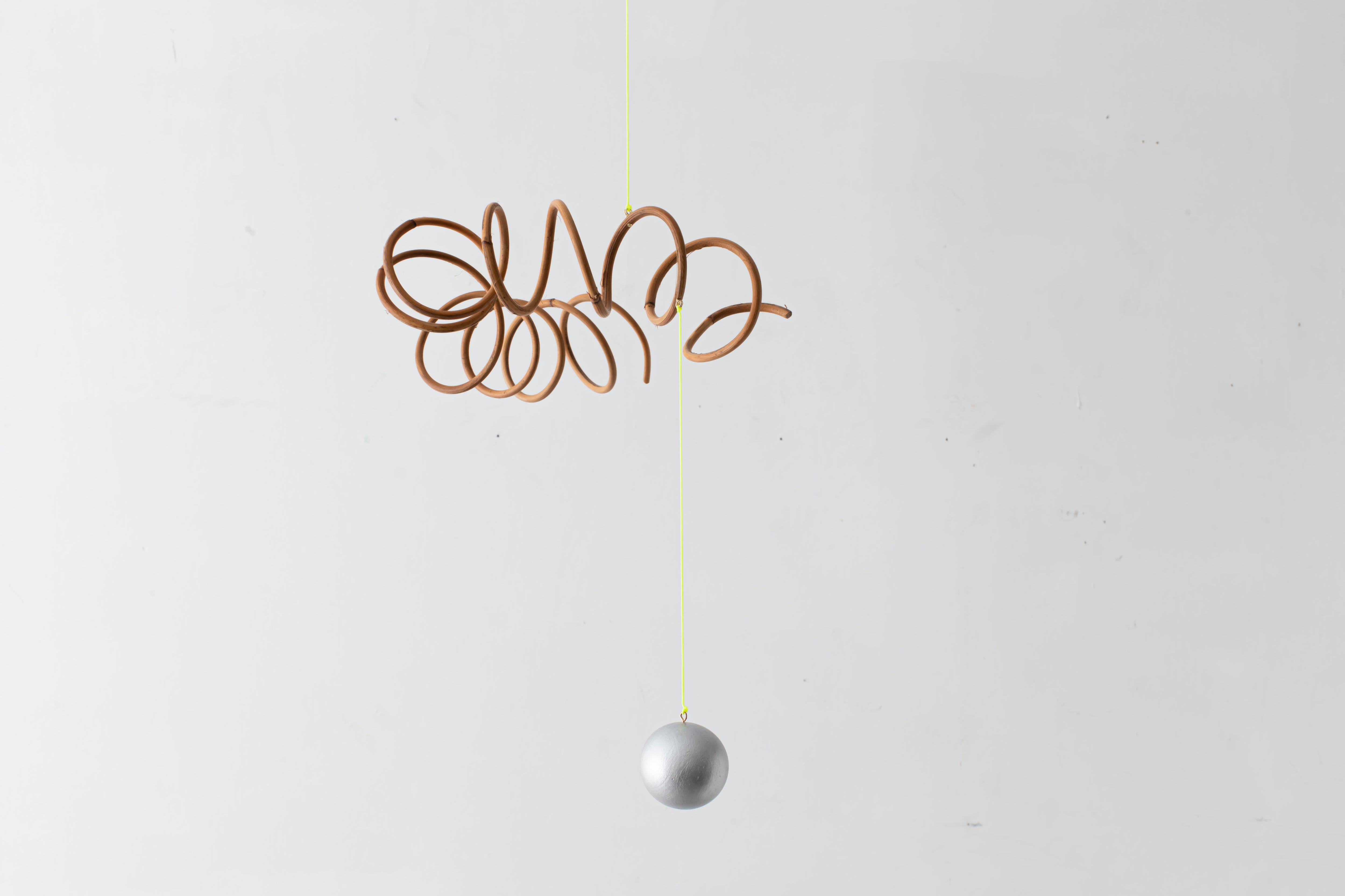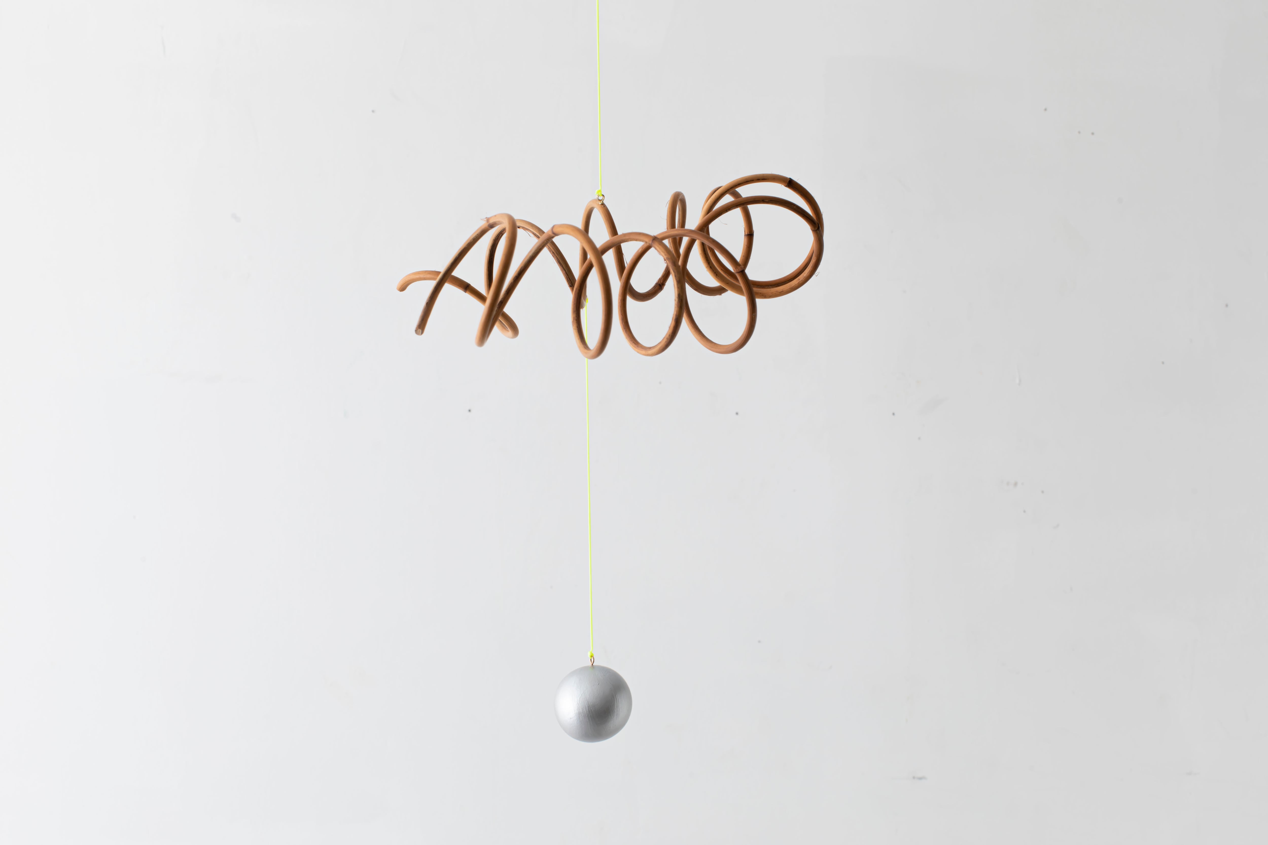 曲線が生み出すアイコニックなフォルムのモビールは、一本の籐を手作業でひとつひとつ型を使用しながら湾曲させて立体的に仕上げています。吊るし紐の長さや、かけ方を変えたりするだけで表情が変えられるので、飾る場所などによってアレンジを効かせながら何通りもの楽しみ方ができます。表情の変化もぜひお楽しみください。