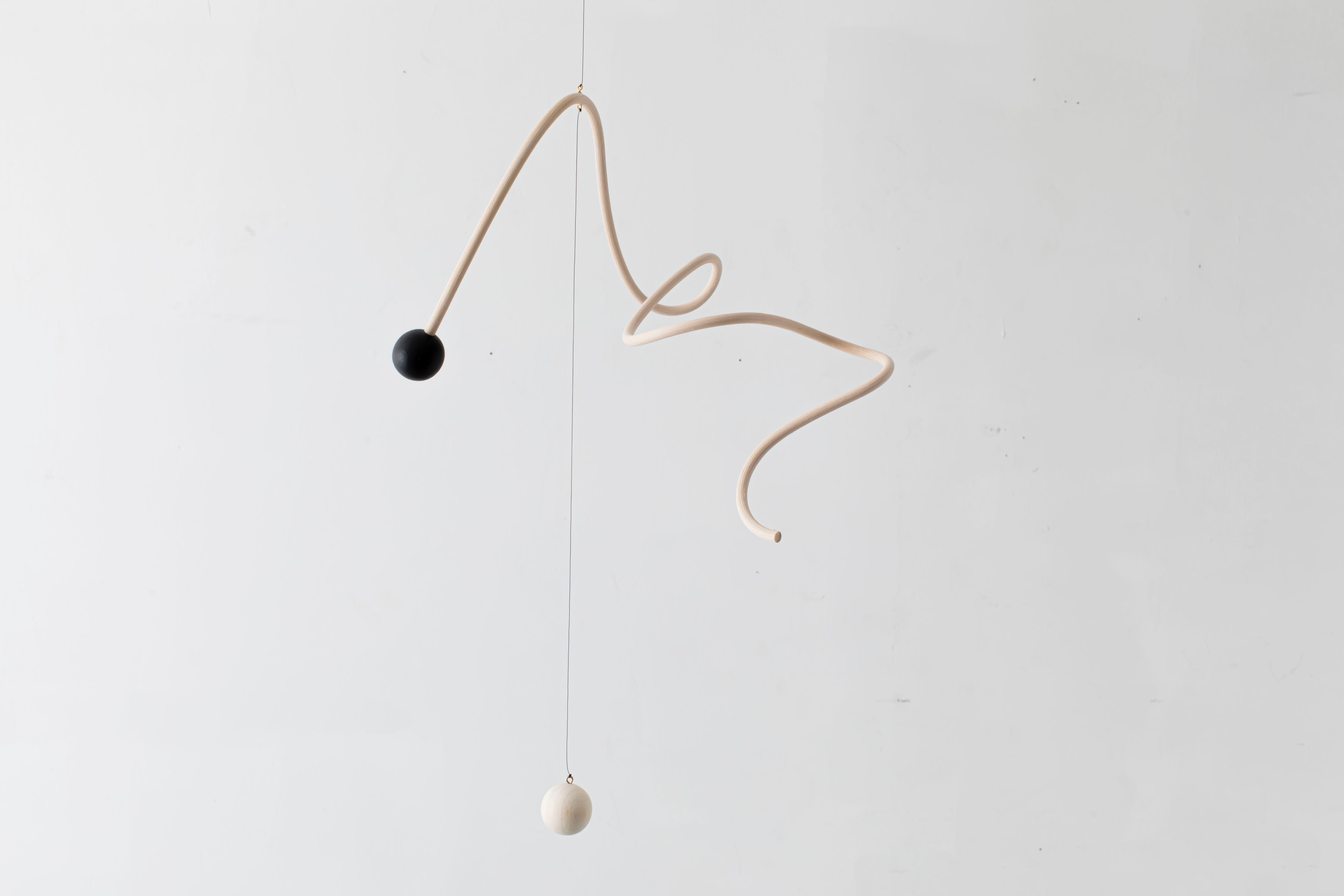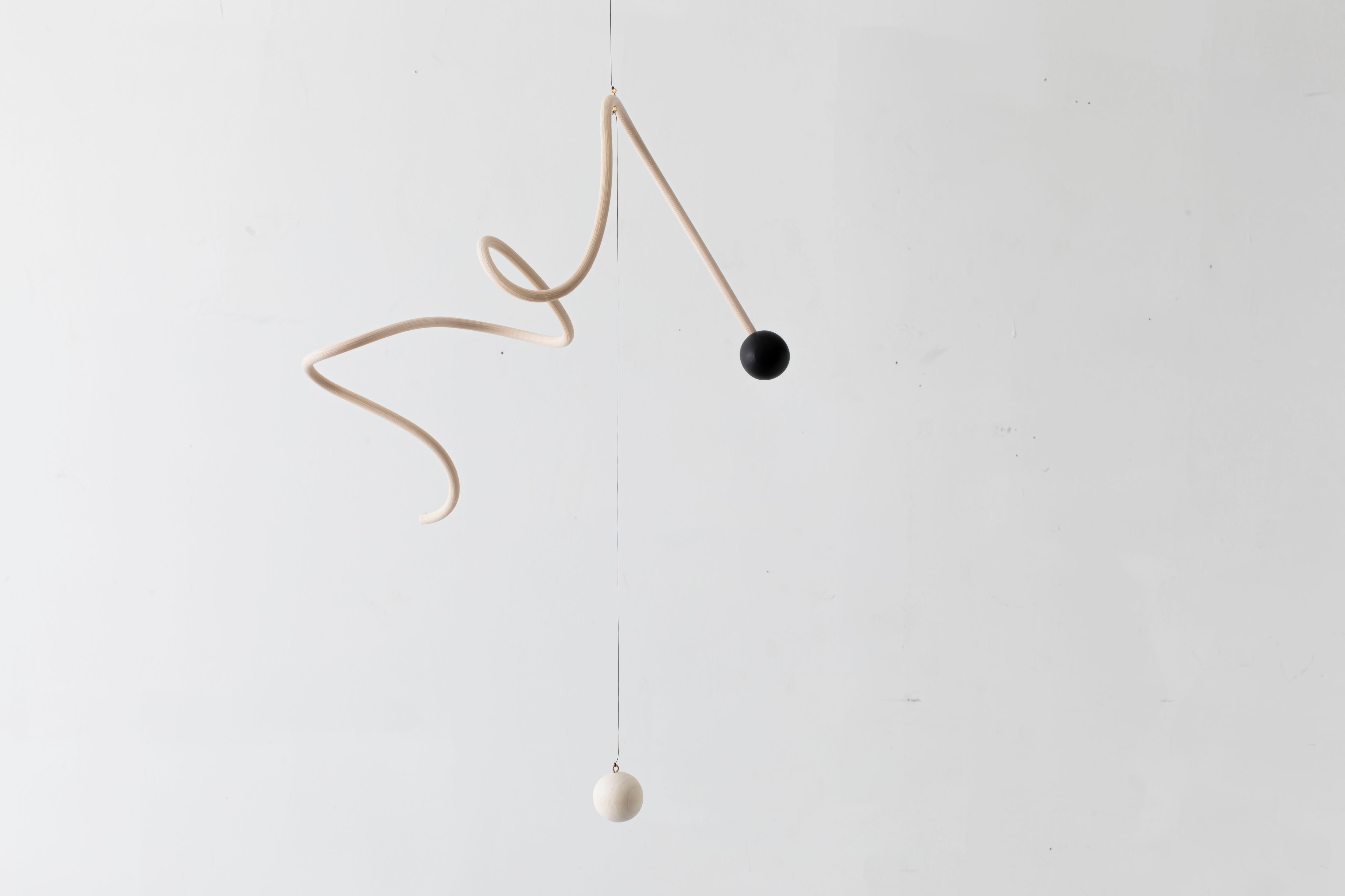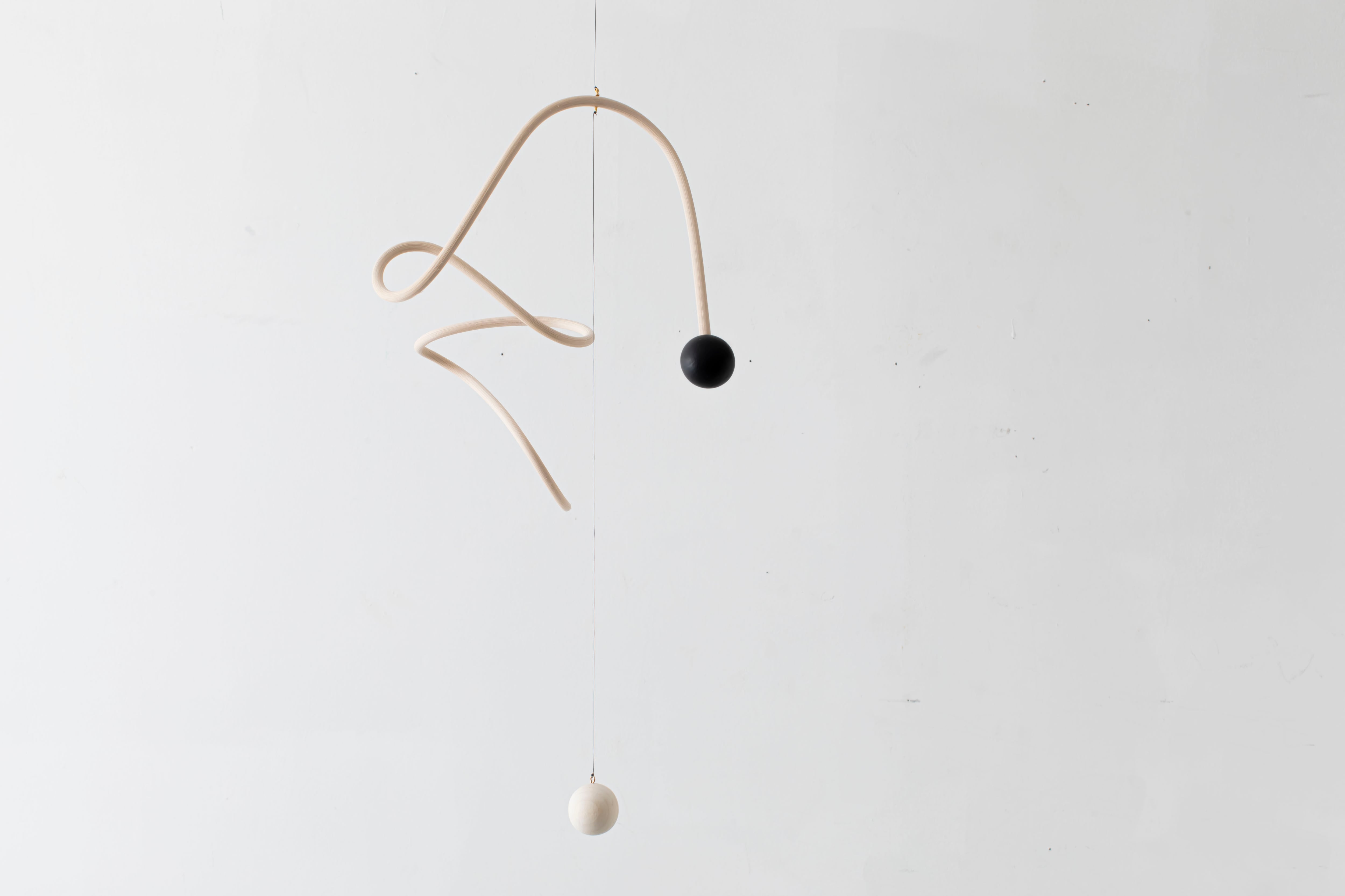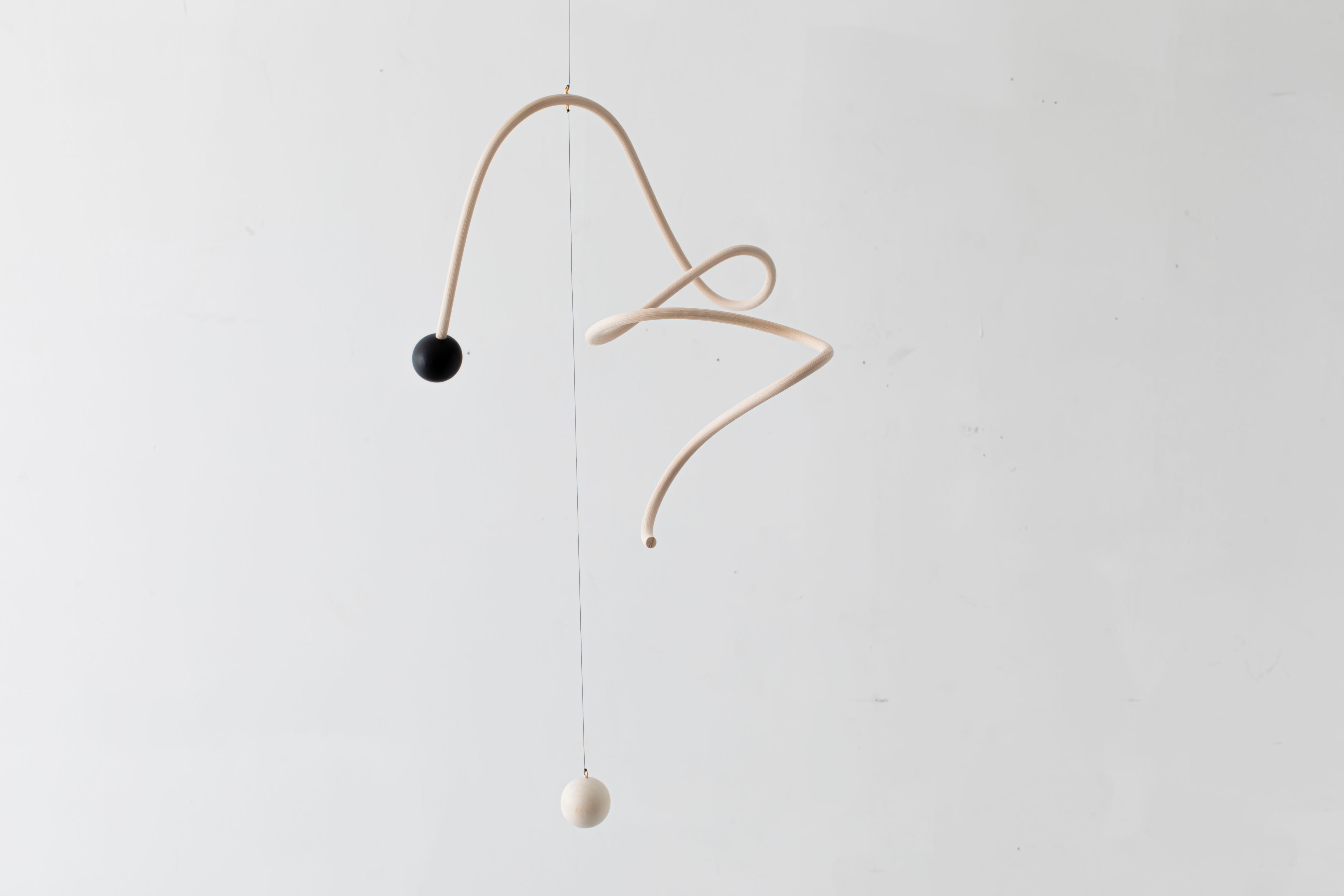 曲線が生み出すアイコニックなフォルムのモビールは、一本の籐を手作業でひとつひとつ型を使用しながら湾曲させて立体的に仕上げています。吊るし紐の長さや、かけ方を変えたりするだけで表情が変えられるので、飾る場所などによってアレンジを効かせながら何通りもの楽しみ方ができます。(※デザインによってはかけ方を変えられないものもございます)