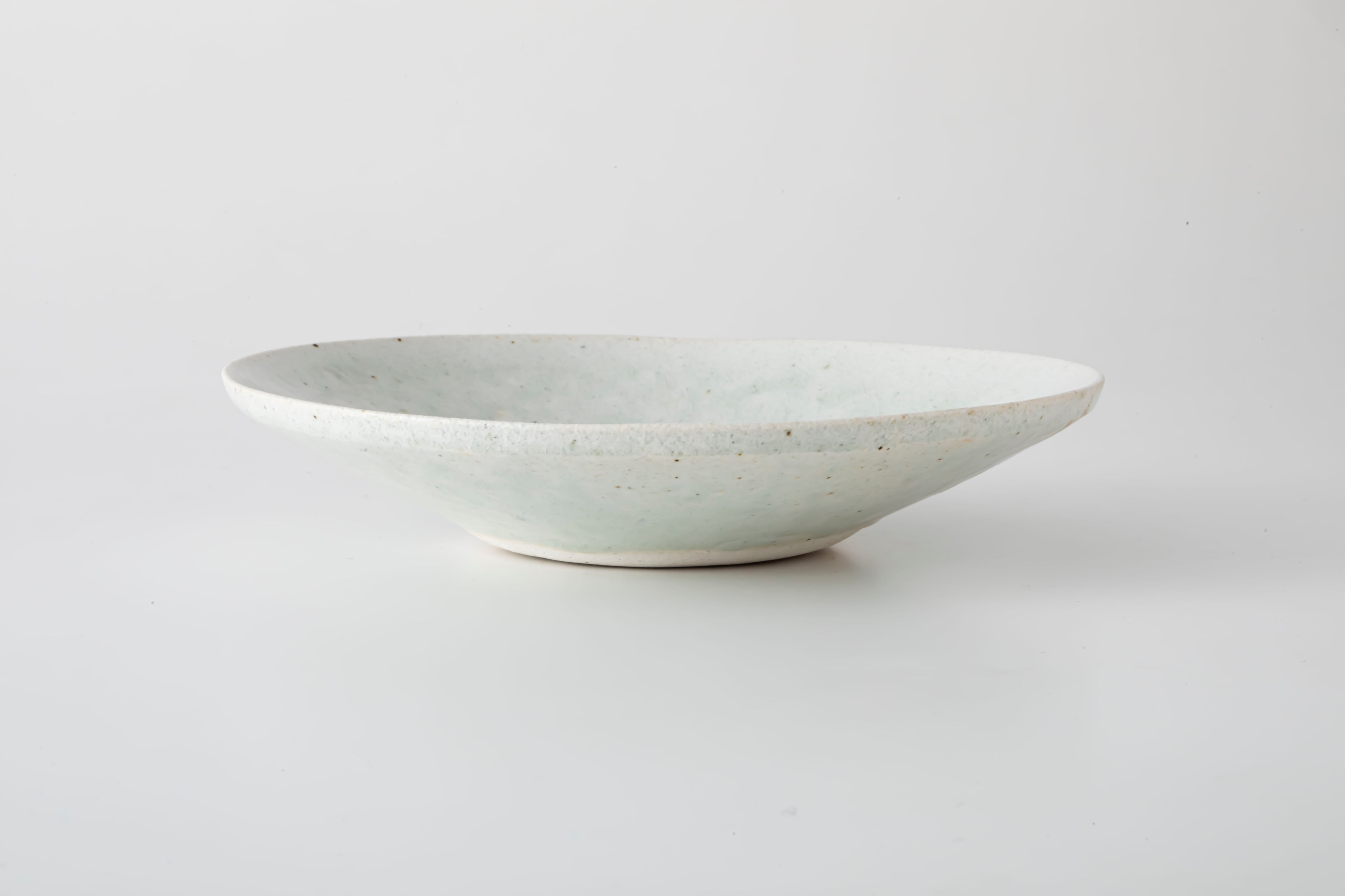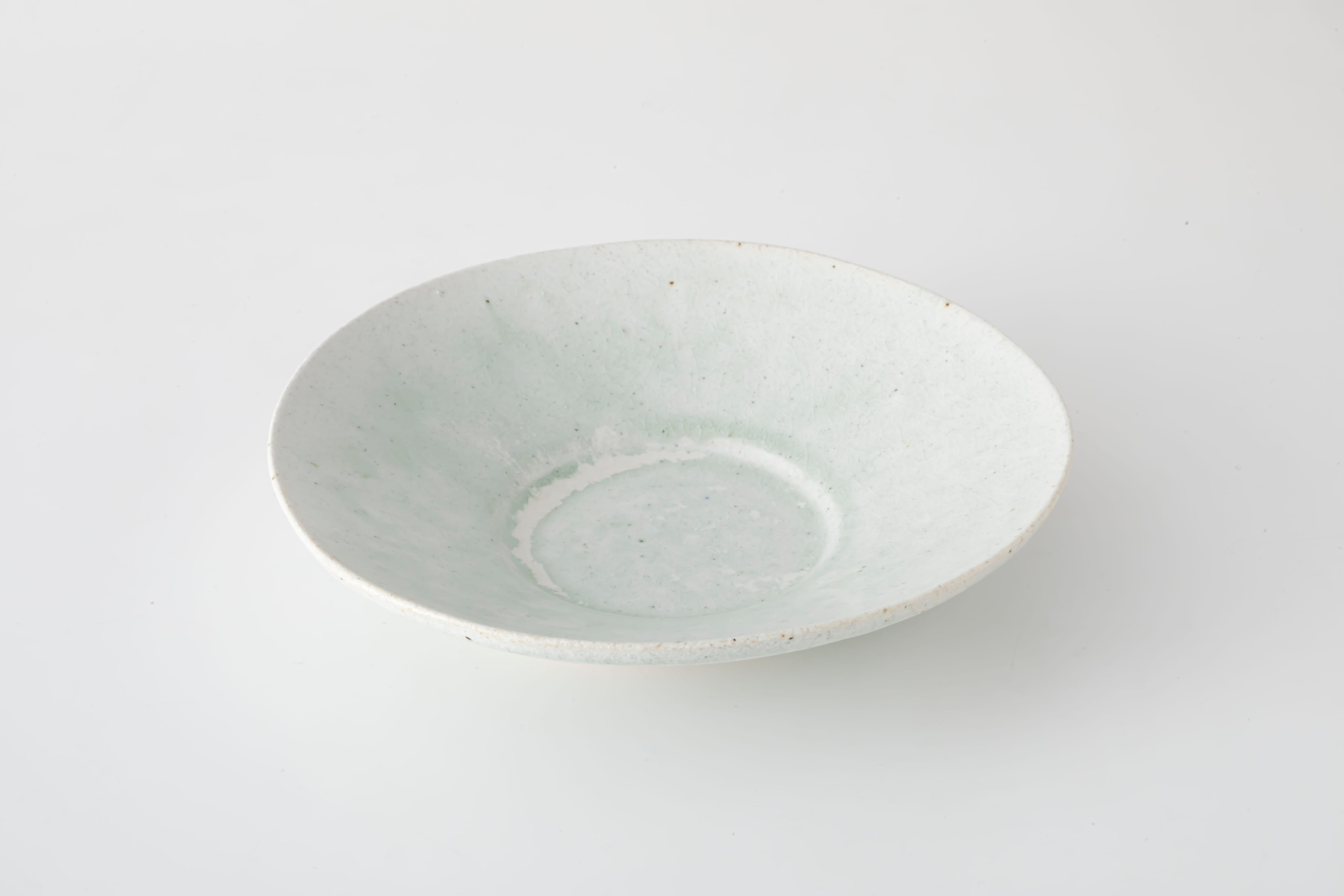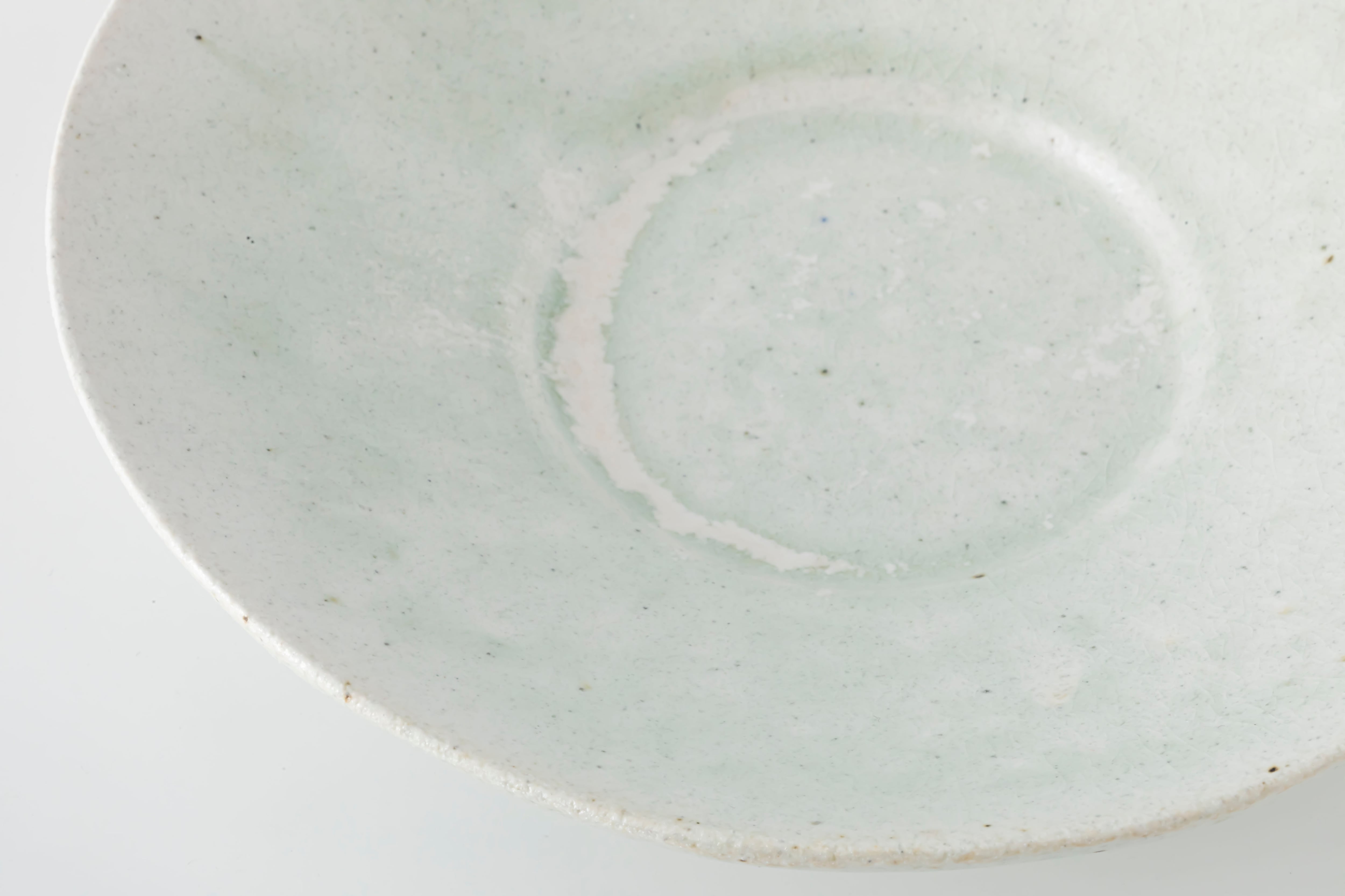 焼成によって一つひとつ異なる表情を見せる、十場あすかさんの器。白を基調としながらも、土の色味や釉薬の溜まりによって、生成りや淡い青みを感じる奥行きのある景色が広がります。貫入が魅せる繊細な表情と優しい佇まいの中に、土の持つ力強さも感じられる一枚です。