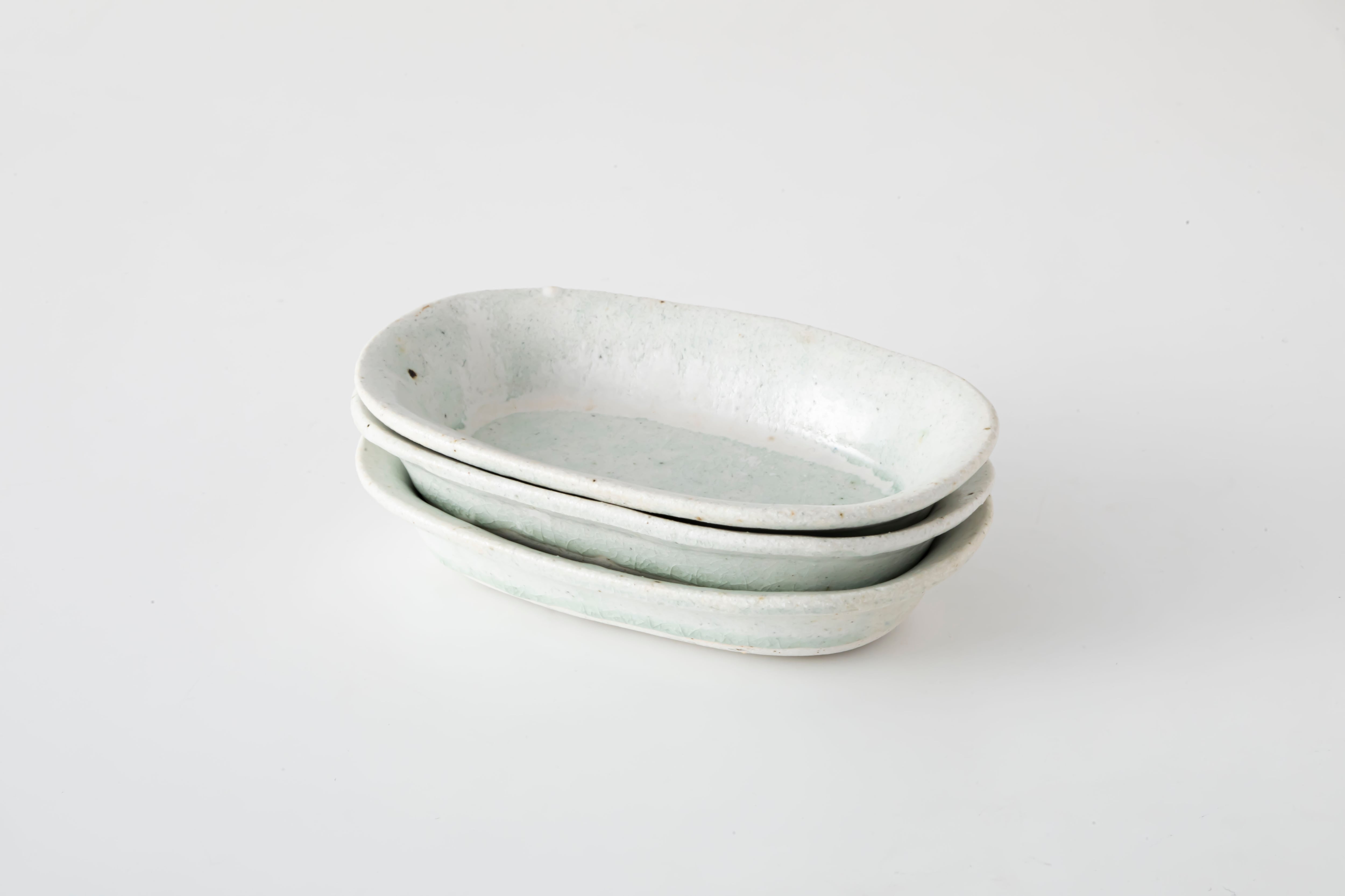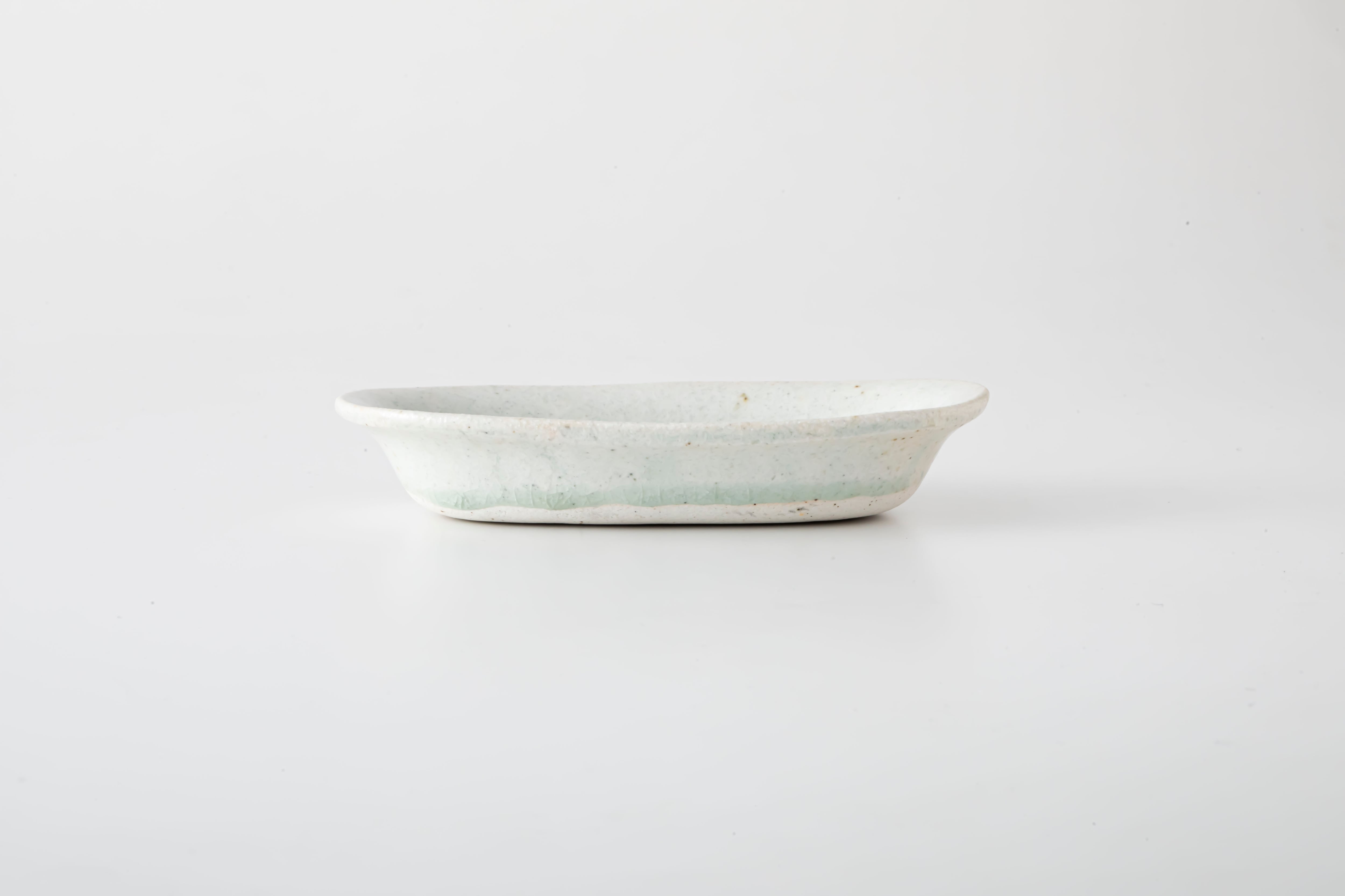 焼成によって一つひとつ異なる表情を見せる、十場あすかさんの器。白を基調としながらも、土の色味や釉薬の溜まりによって、生成りや淡い青みを感じる奥行きのある景色が広がります。貫入が魅せる繊細な表情と優しい佇まいの中に、土の持つ力強さも感じられる一枚です。
