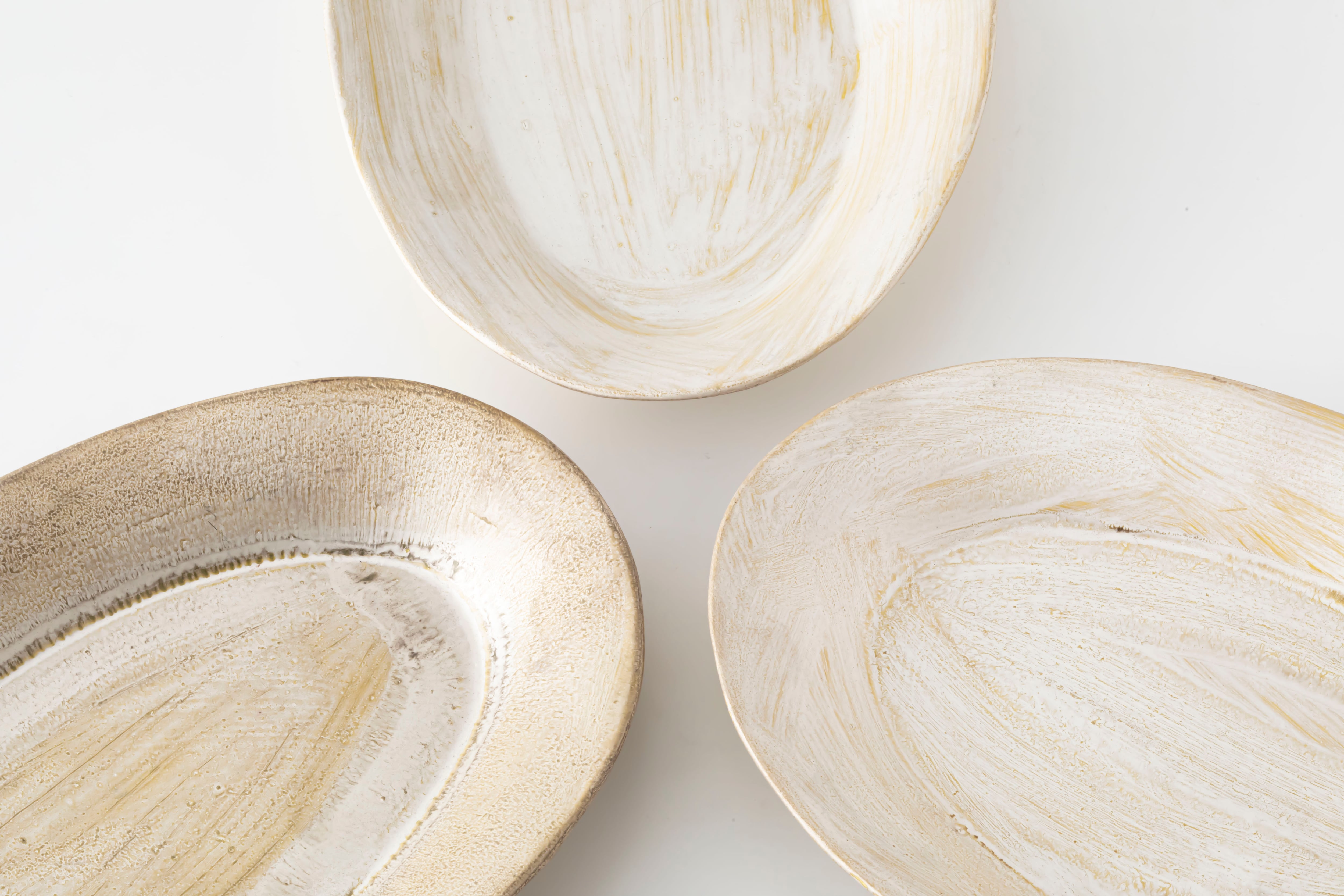 煮汁やソースのあるお料理にも安心して使えるオーバル(楕円皿)は、パスタやメイン料理をはじめ、サラダやフルーツなど、盛りつけ次第で日々の食卓に幅広く活躍してくれる器です。