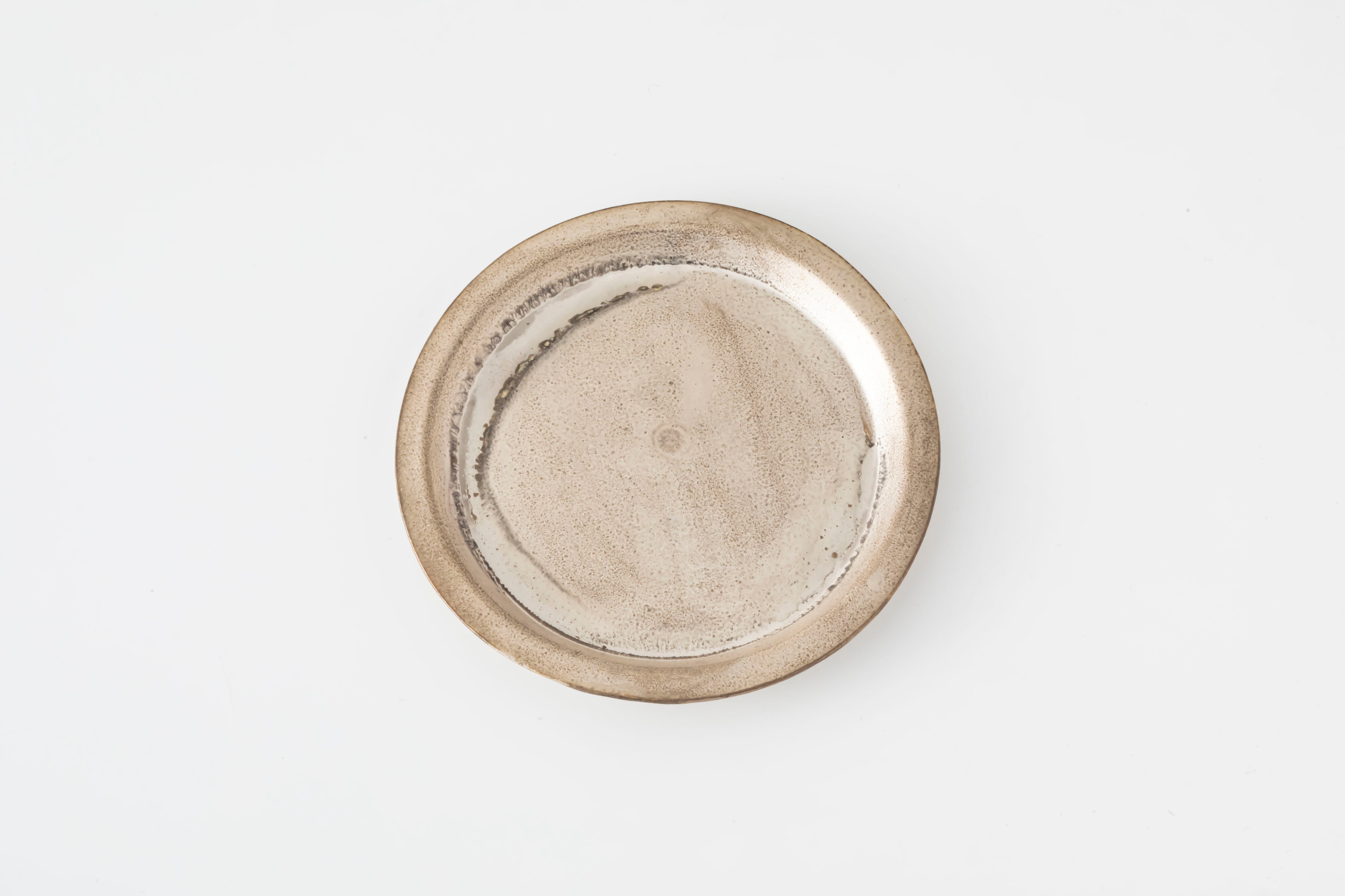 光を受けてやわらかく反射する十場あすかさんの銀彩のシリーズは、主張しすぎることなく、盛り付ける料理を美味しそうに引き立ててくれます。落ち着いた輝きのなかに、土ものならではのおおらかさと存在感が感じられます。銀彩は使い込むほどに少しずつ表情が変わり、経年変化を楽しめるのも魅力のひとつです。