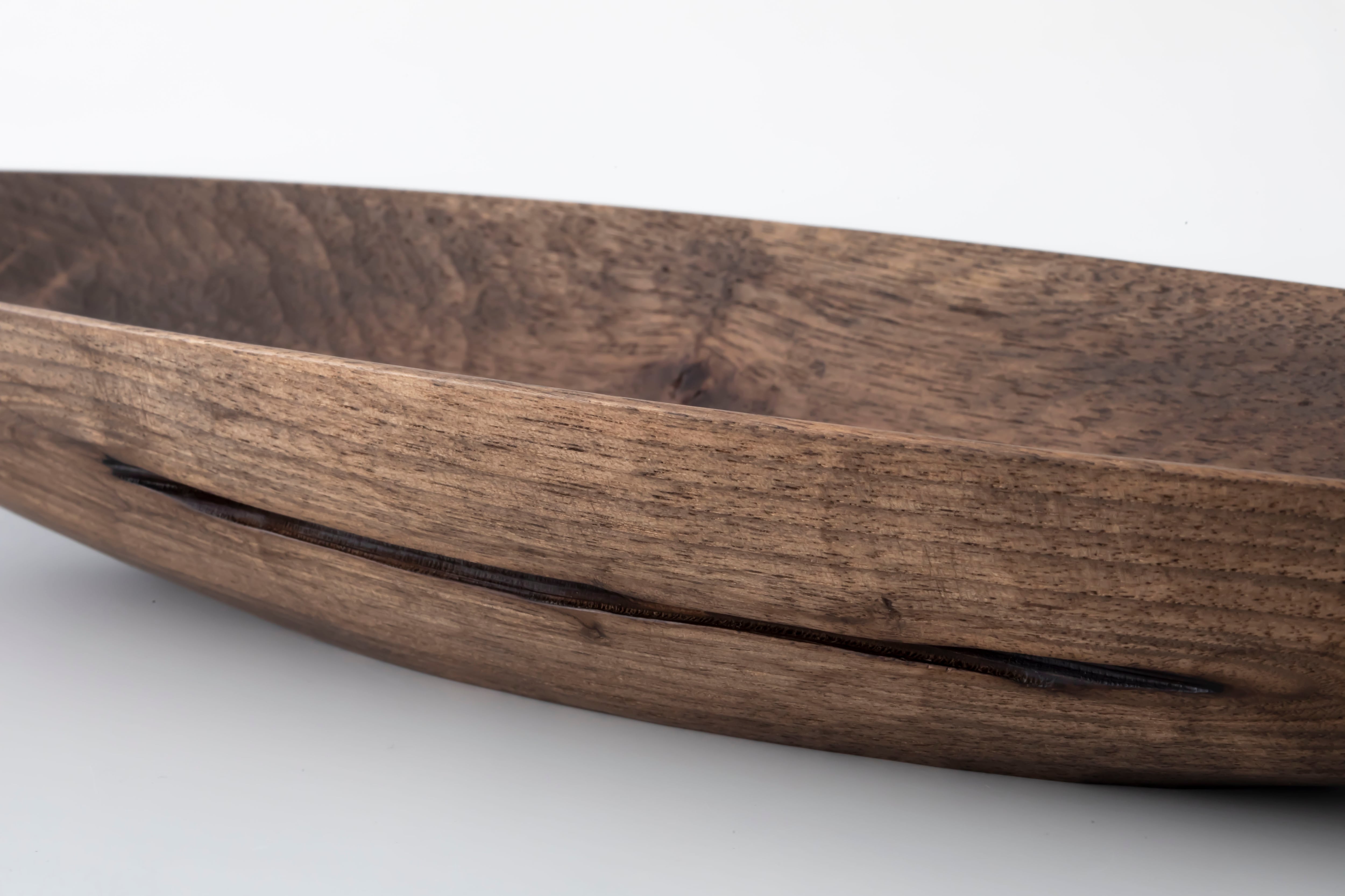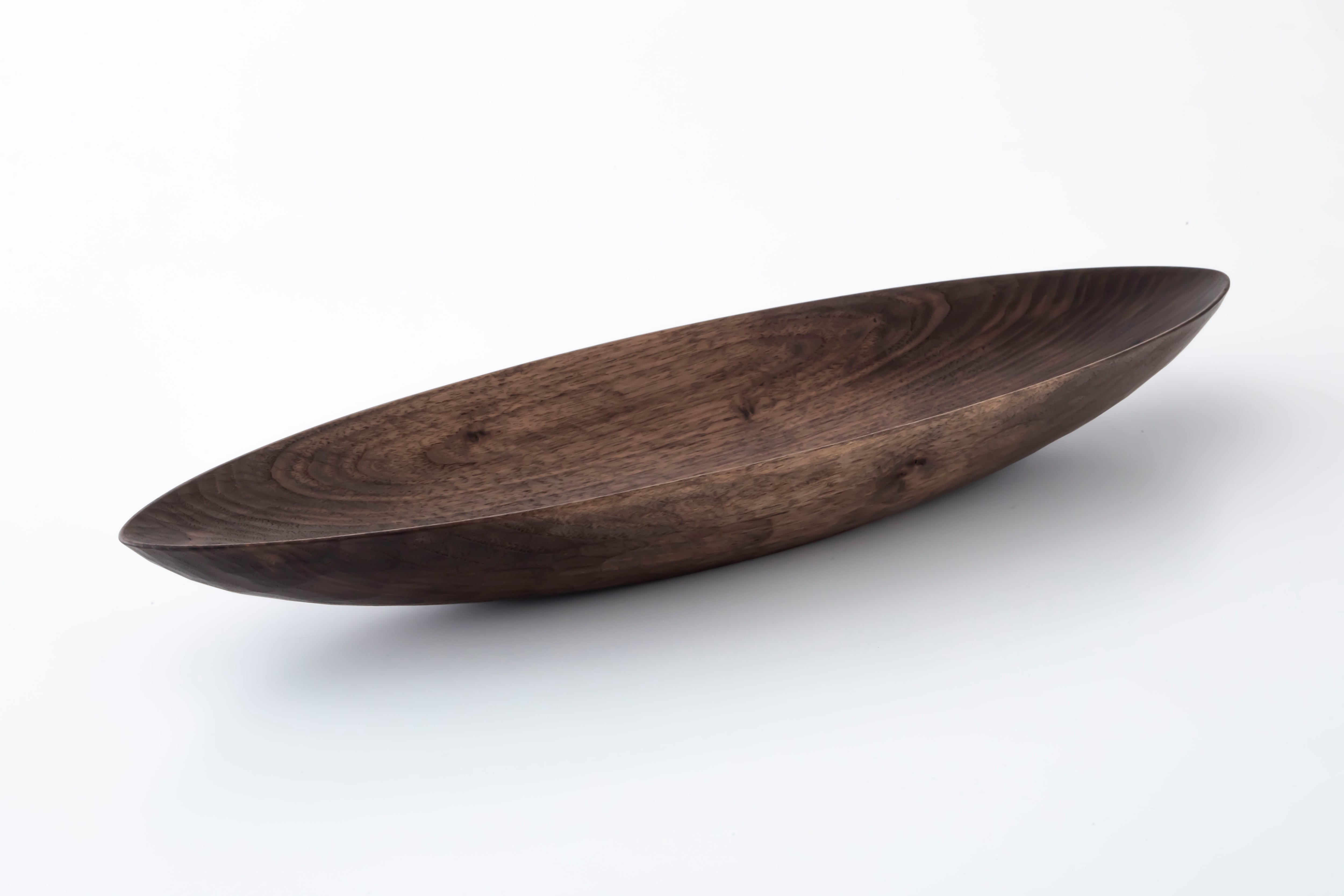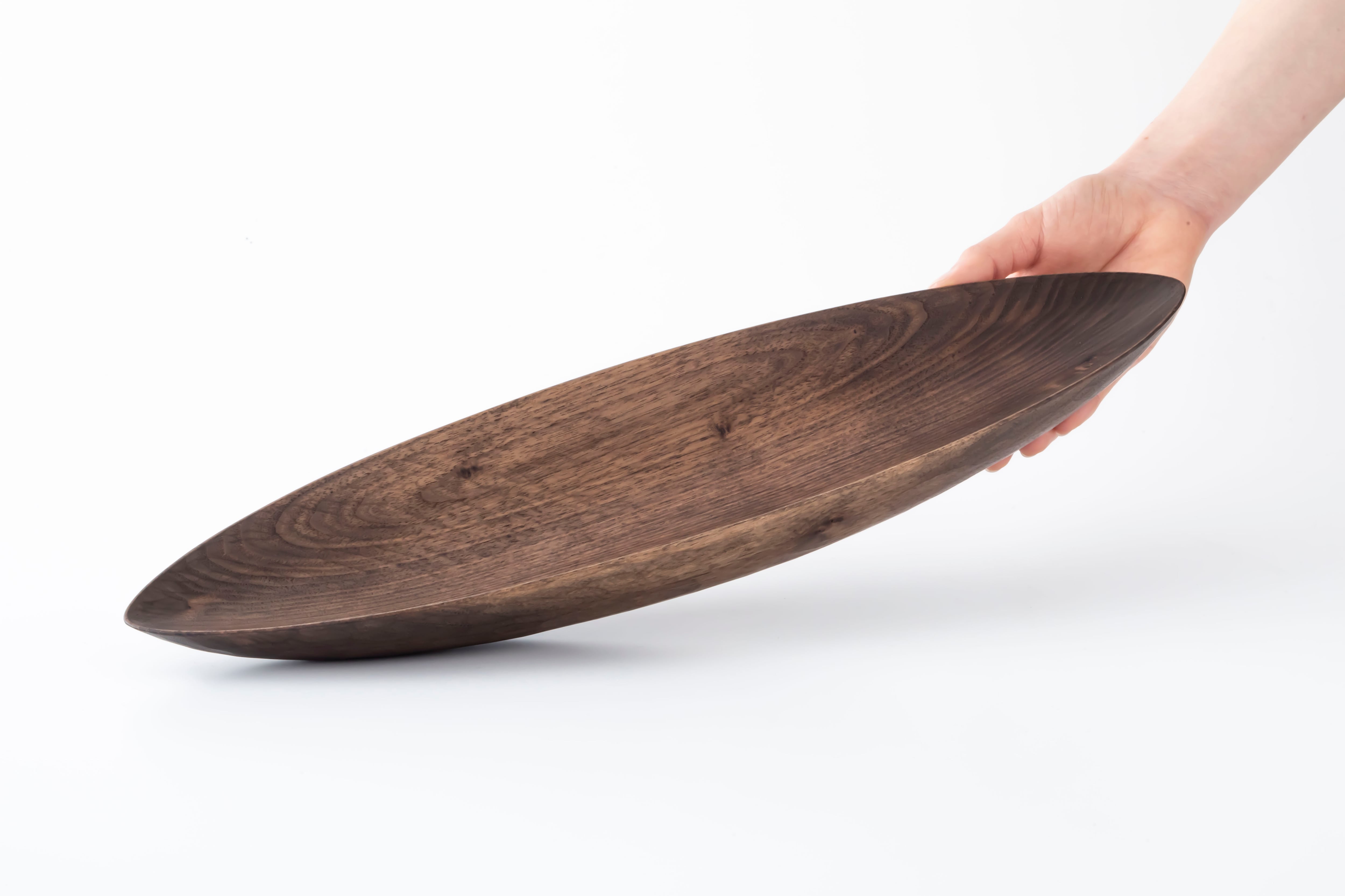 手彫りならではのやわらかな曲線を描くフォルムが美しい舟形のプレートは、表面に残る彫り跡が光や見る角度によってさまざまな表情を見せてくれます。料理やお菓子を盛りつけたり、お気に入りの小物を飾るなど、自由にお楽しみください。