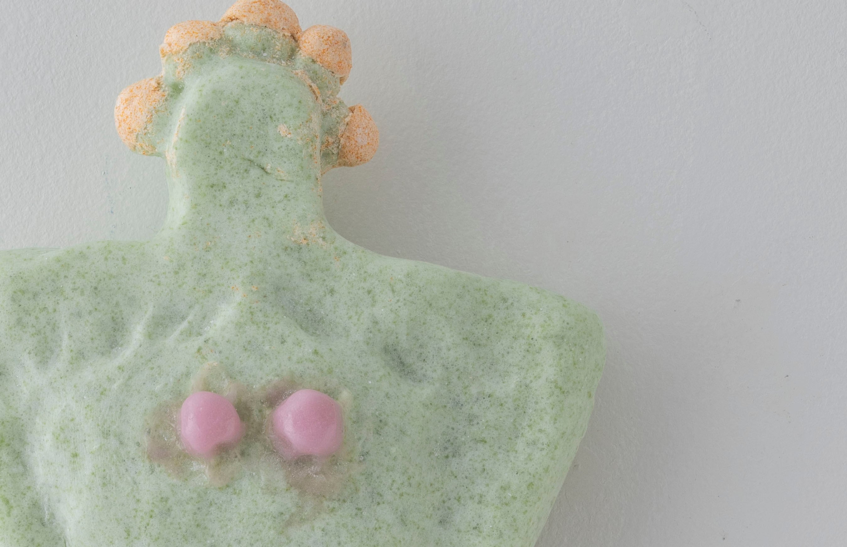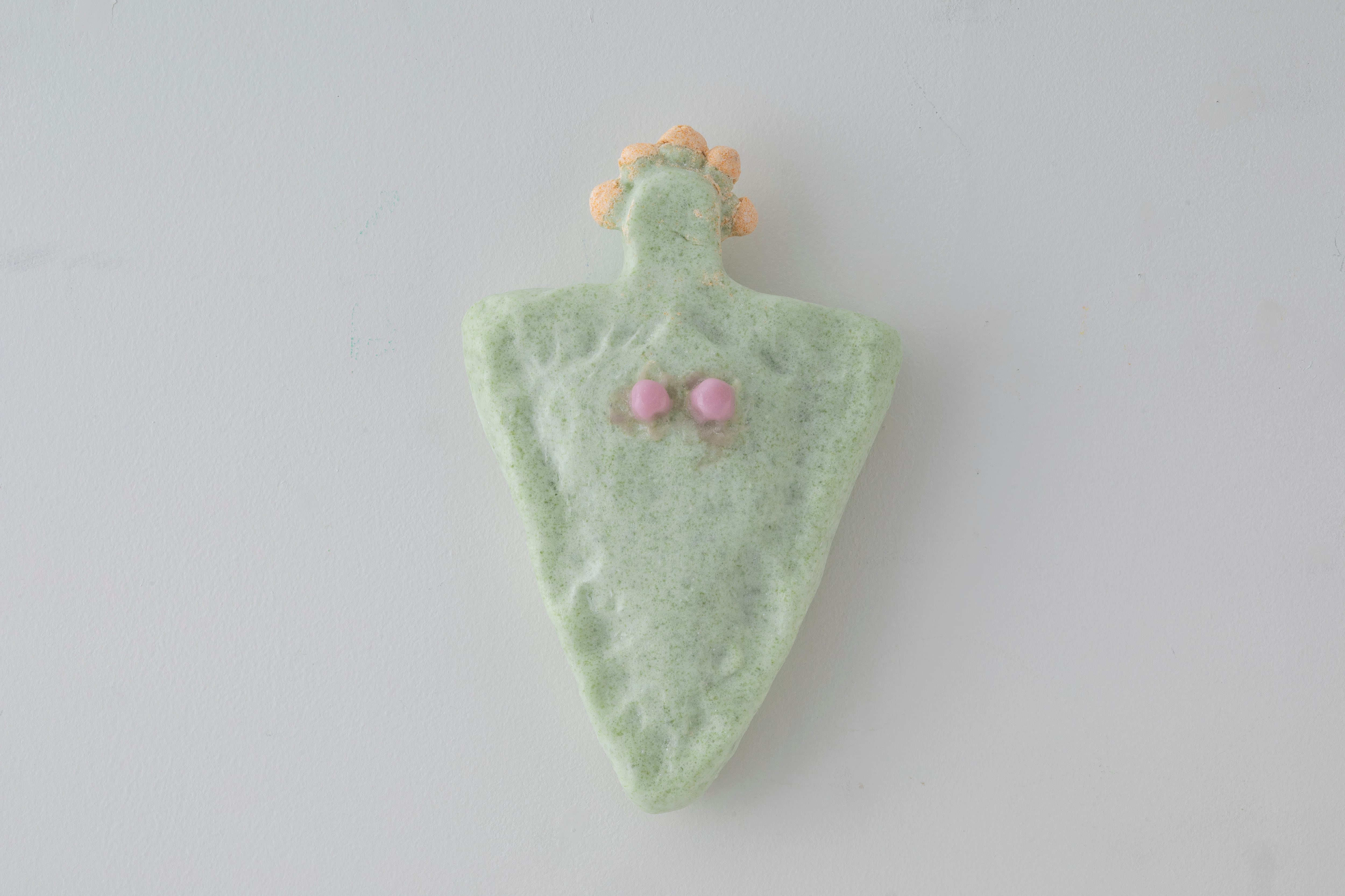 今展ではある種のユニークで捉え所のないフォルムに、メタファーとしての役割が与えられている。作家自身が魅了される古代の造形や風習の意味を再解釈し、土器や土偶、お面など、祭祀や人々の営みの中で古くから精神的な結びつきの象徴だった存在に眼差しを向け、現代の形として表現した。