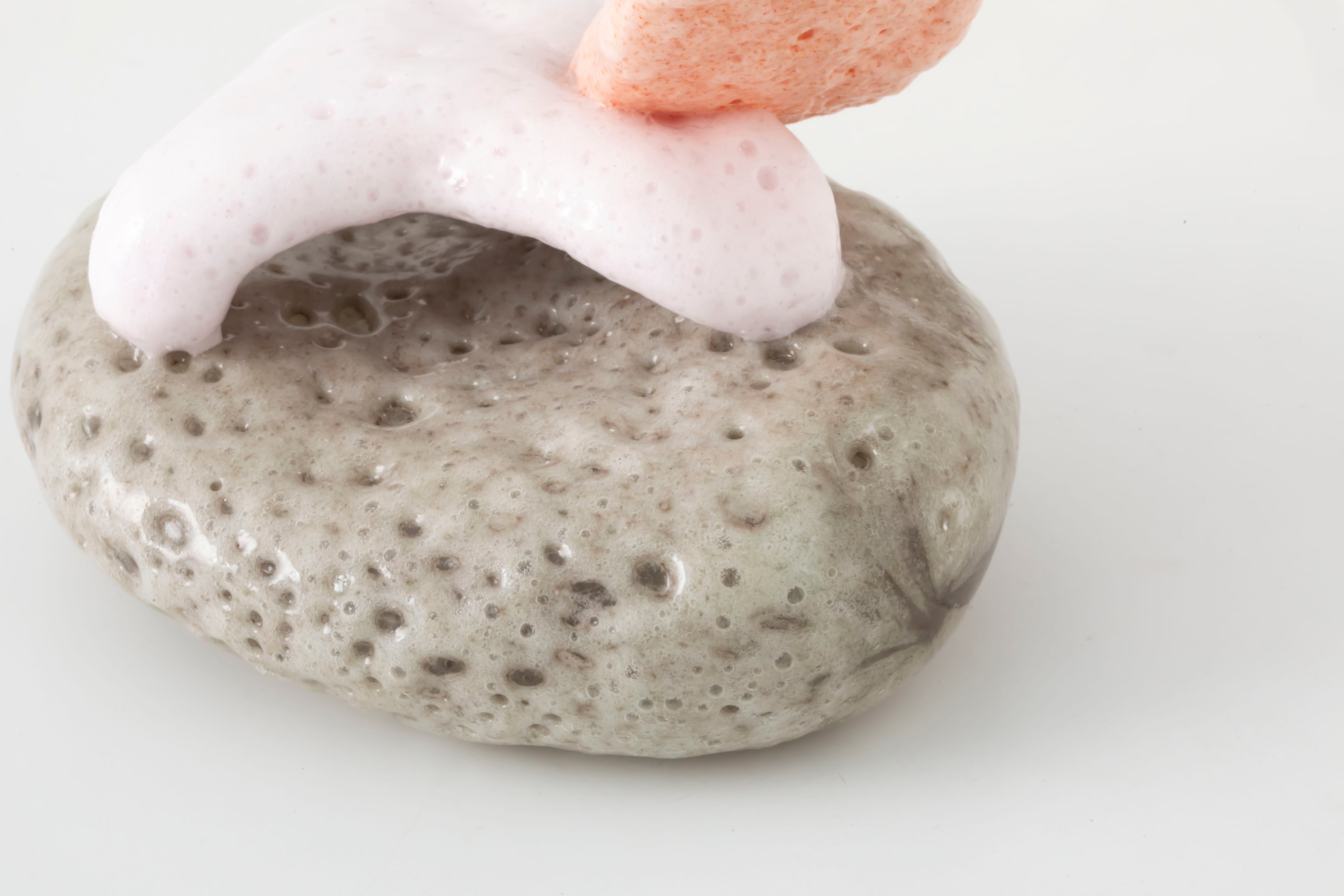 今展ではある種のユニークで捉え所のないフォルムにメタファーとしての役割が与えられている。作家自身が魅了される古代の造形や風習の意味を再解釈し、土器や土偶、お面など、祭祀や人々の営みの中で古くから精神的な結びつきの象徴だった存在に眼差しを向け、現代の形として表現した。