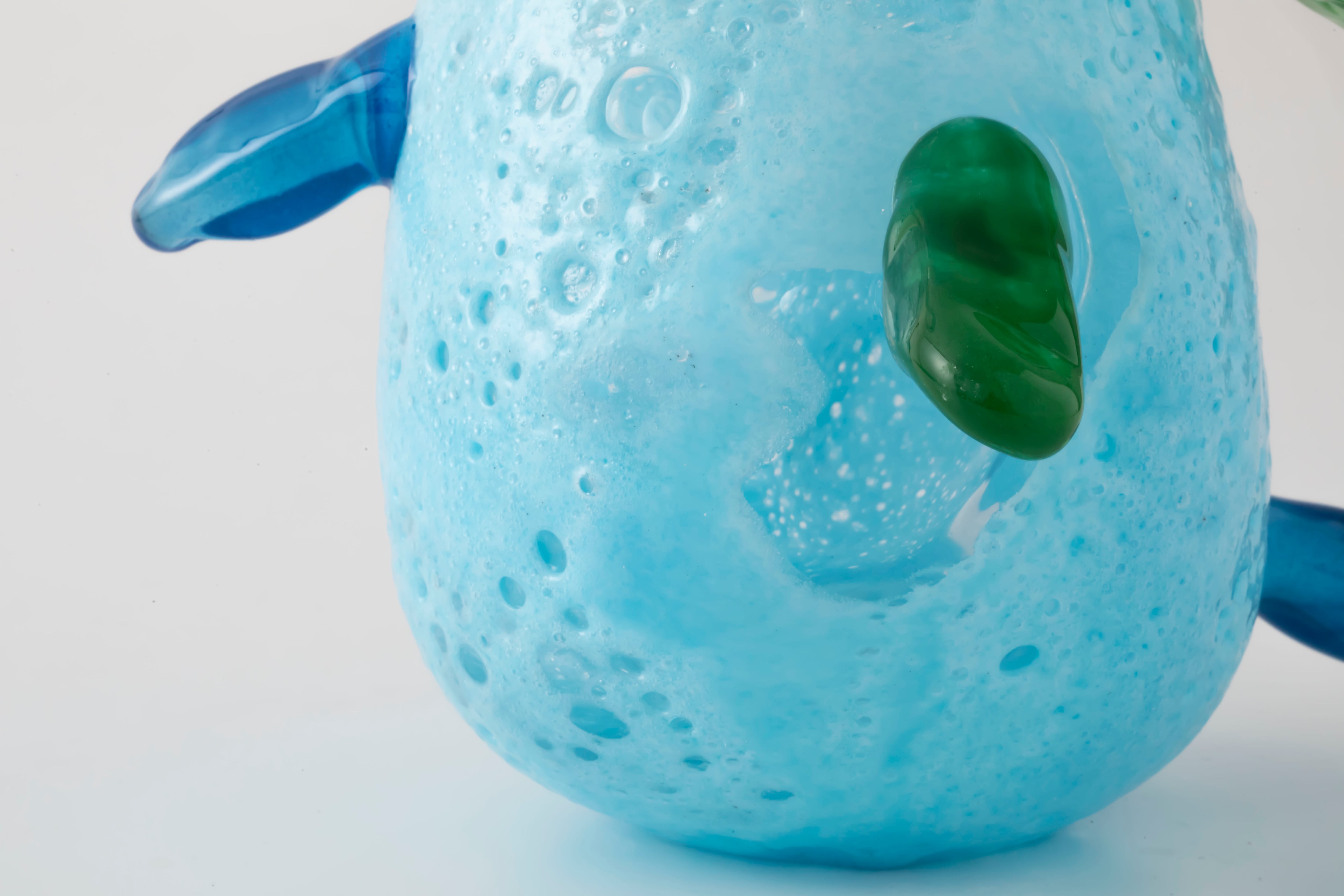 ブローワークを用いて表現した泡のような気泡が浮かぶ軽やかな表情とは対照的に、手に取るとガラスらしい重厚感と安定感のある作品です。光の当たり方や見る角度によって表情が変わるため、様々な場所でつい眺めてみたくなります。お手持ちのオブジェと組み合わせてもぜひお楽しみください。