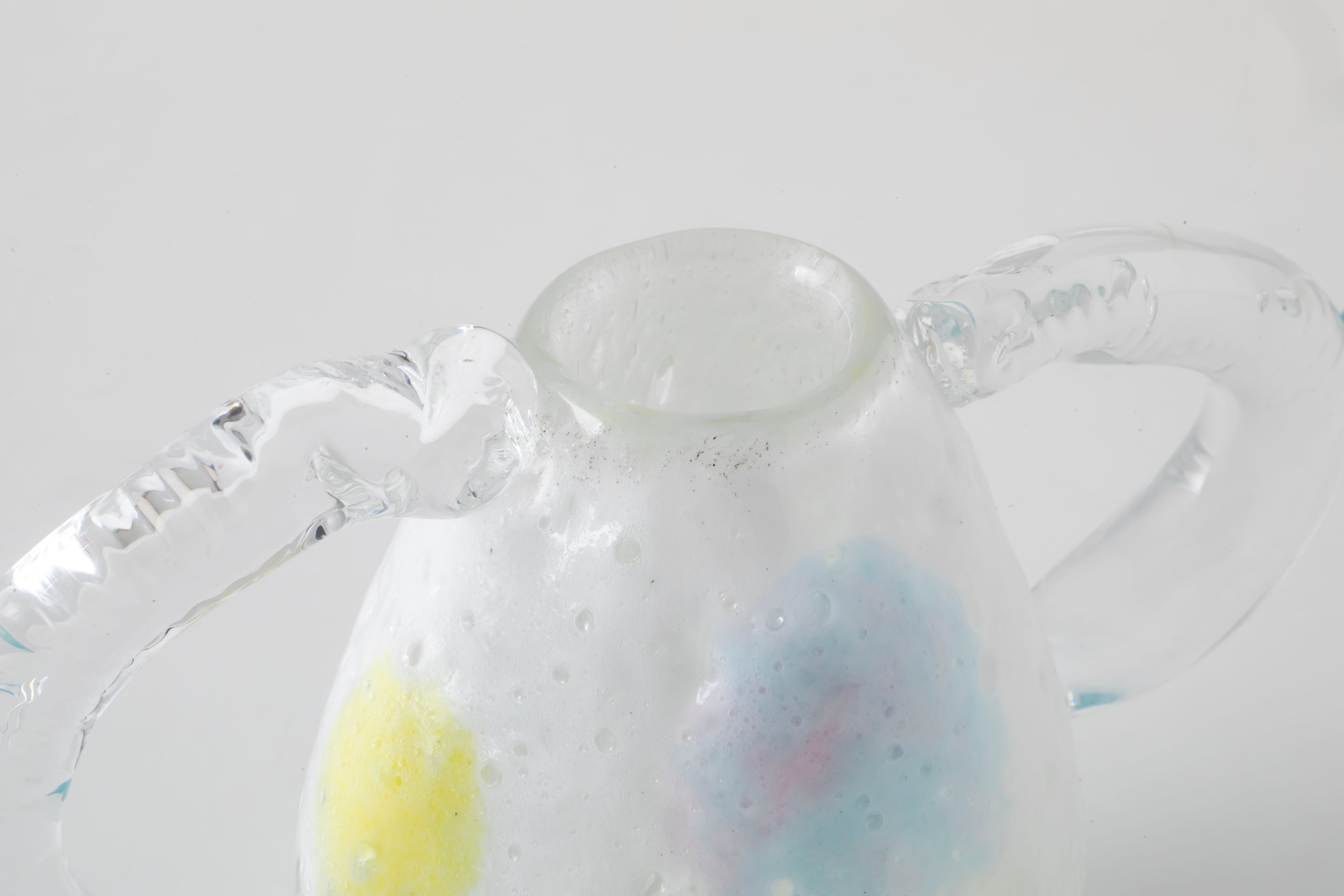 ブローワークを用いて表現した泡のような気泡が浮かぶ軽やかな表情とは対照的に、手に取るとガラスらしい重厚感と安定感のある作品です。光の当たり方や見る角度によって表情が変わるため、様々な場所でつい眺めてみたくなります。お手持ちのオブジェと組み合わせてもぜひお楽しみください。