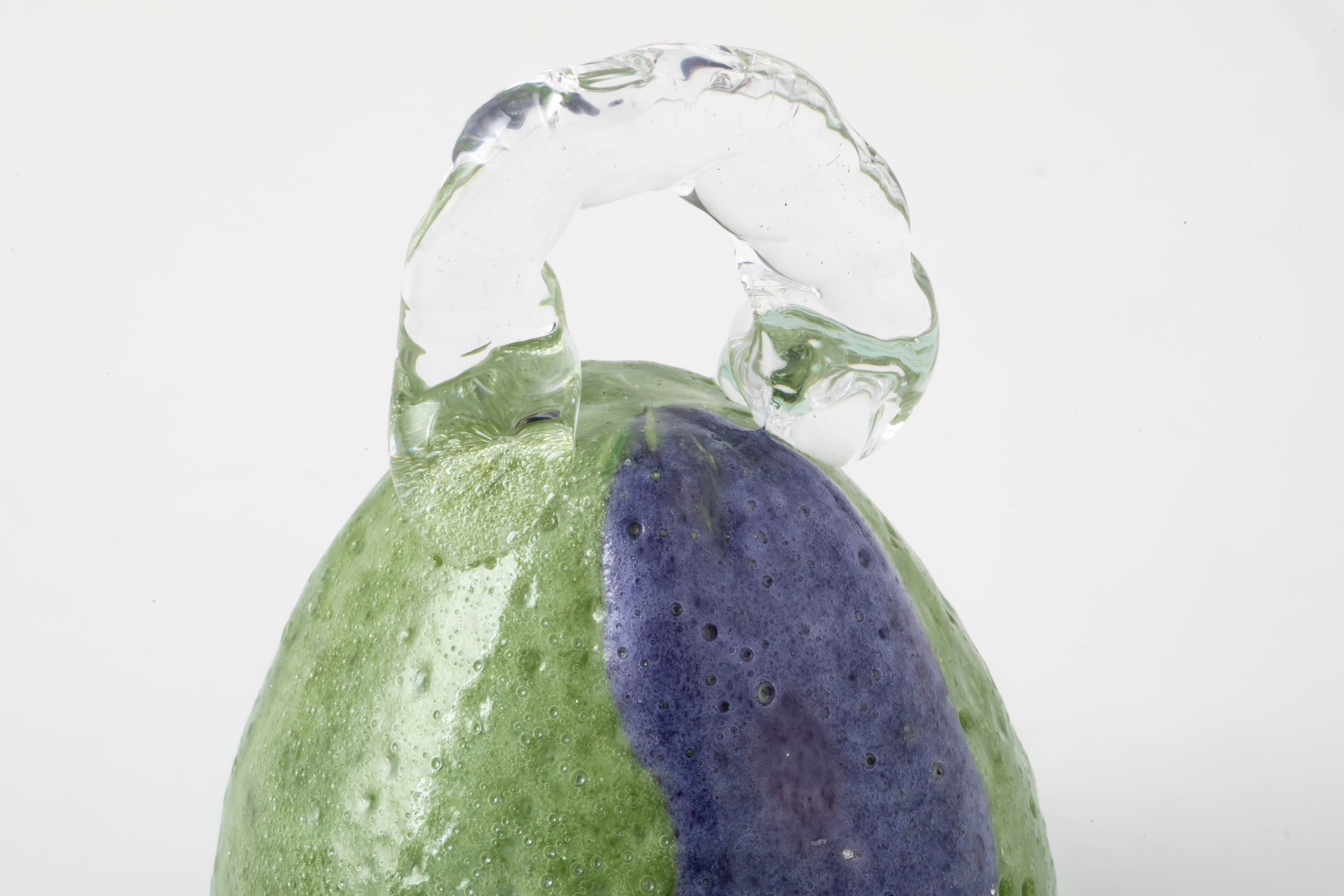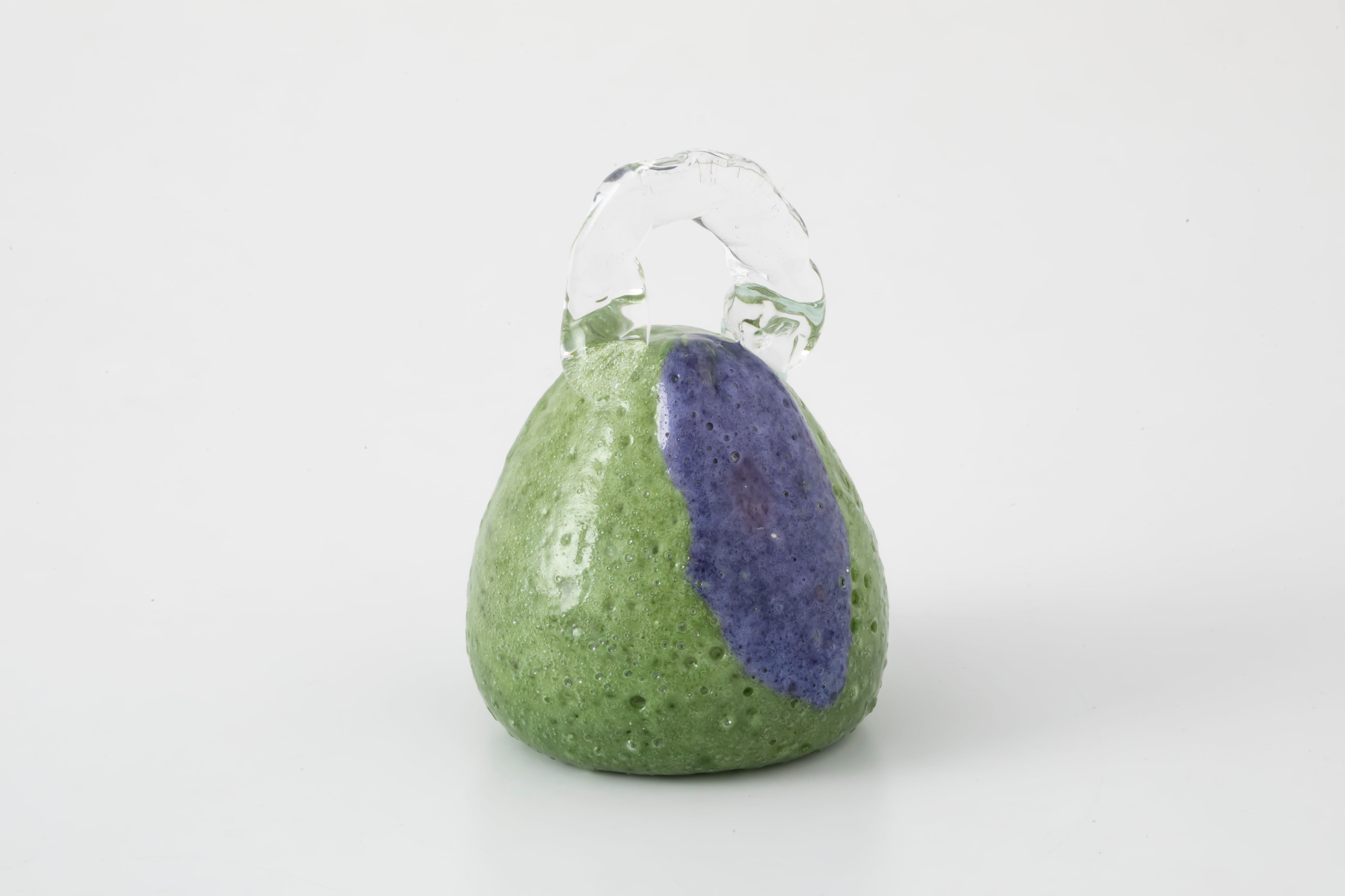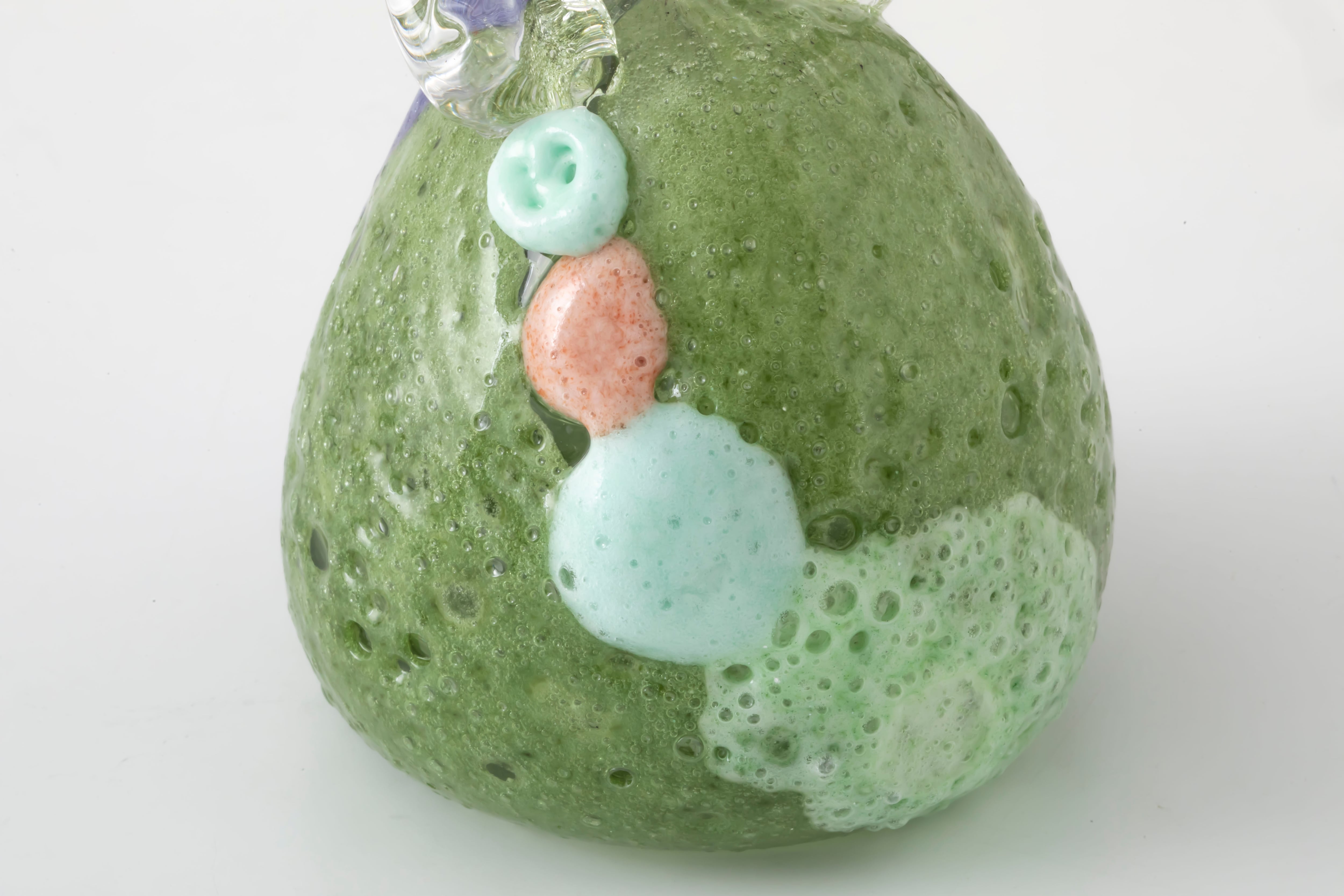 ブローワークを用いて表現した泡のような気泡が浮かぶ軽やかな表情とは対照的に、手に取るとガラスらしい重厚感と安定感のある作品です。光の当たり方や見る角度によって表情が変わるため、様々な場所でつい眺めてみたくなります。お手持ちのオブジェと組み合わせてもぜひお楽しみください。