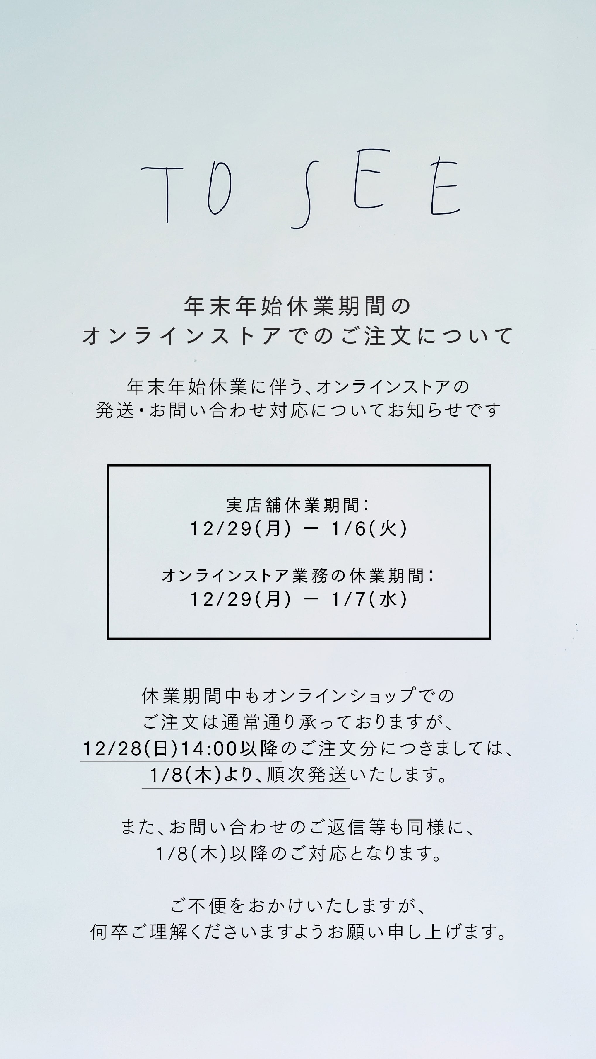 年末年始の休業に伴う発送・お問い合わせ対応についてお知らせいたします。