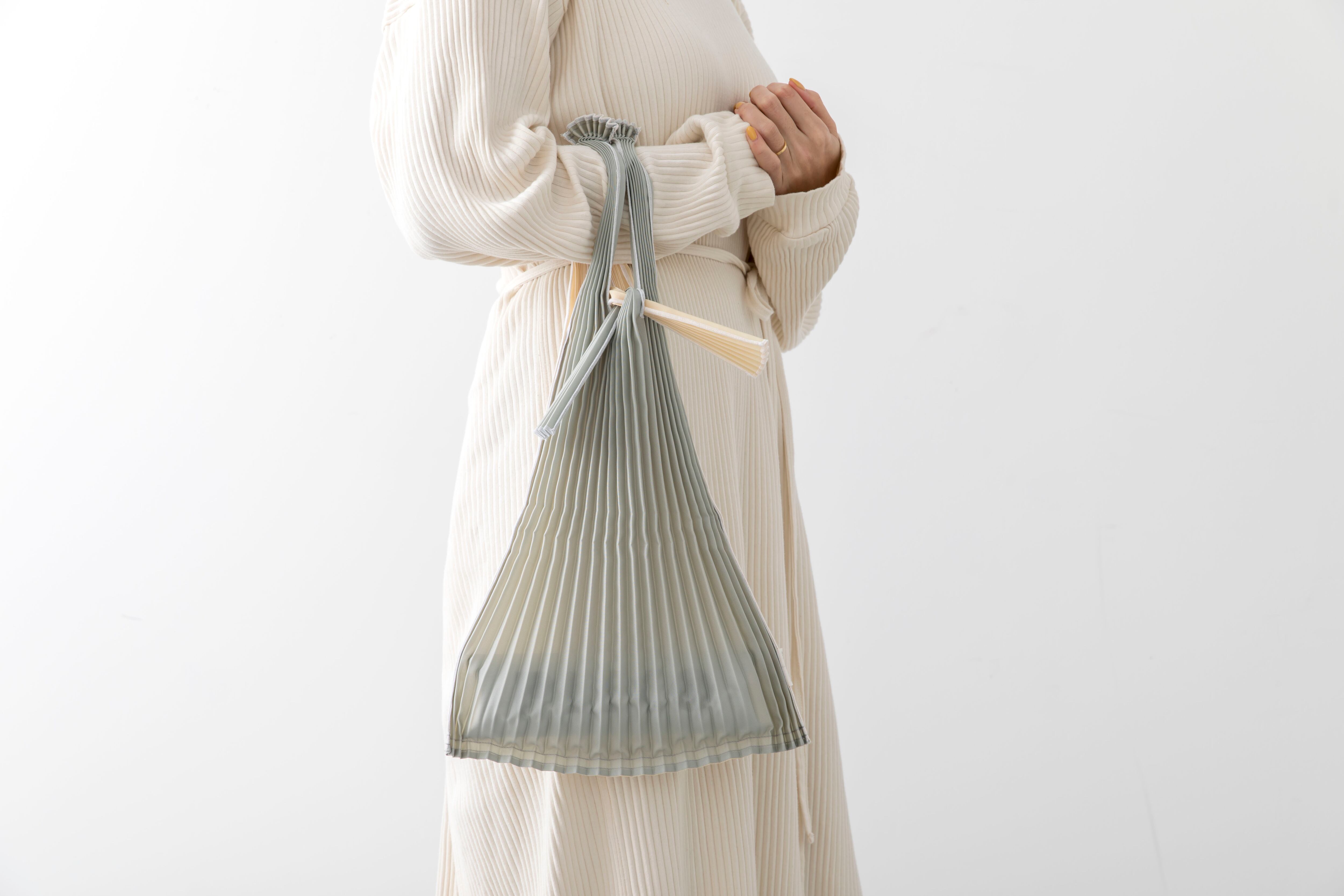 プリーツを広げると、Sサイズは2Lボトル4本分、Lサイズは買い物かご1つ分の容量で、閉じるとコンパクトに収まります。メインのバッグとしてはもちろん、コンパクトで持ち運びしやすいので、旅行や買い物の時のサブバッグにも最適です。