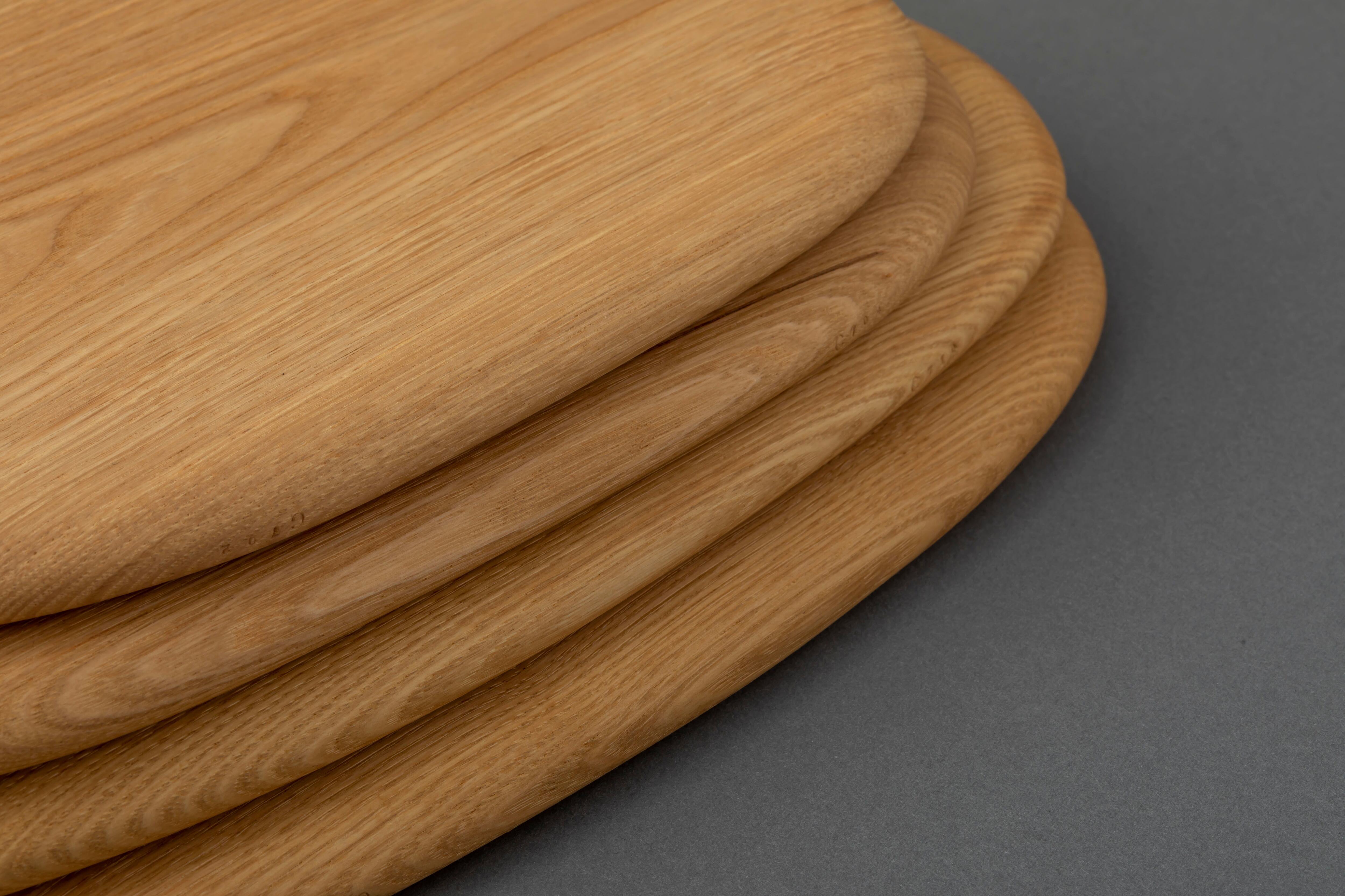 栗の木でつくられたカッティングボードは、ありそうでない絶妙な厚みと、丸みを帯びたフォルムが特徴的。荏胡麻油で表面を保護して仕上げているので、シミや汚れがつきにくく様々な用途でお使いいただけます。まな板として、あるいはパンなどを置くお皿として、またお気に入りのものを置いて飾るようなインテリアとしても。使えば使うほど味わいが深くなる経年変化もお楽しみください。ひとつひとつのサイズに合わせて作られた専用の布袋に入れてお届けするので、ギフトにもおすすめです。